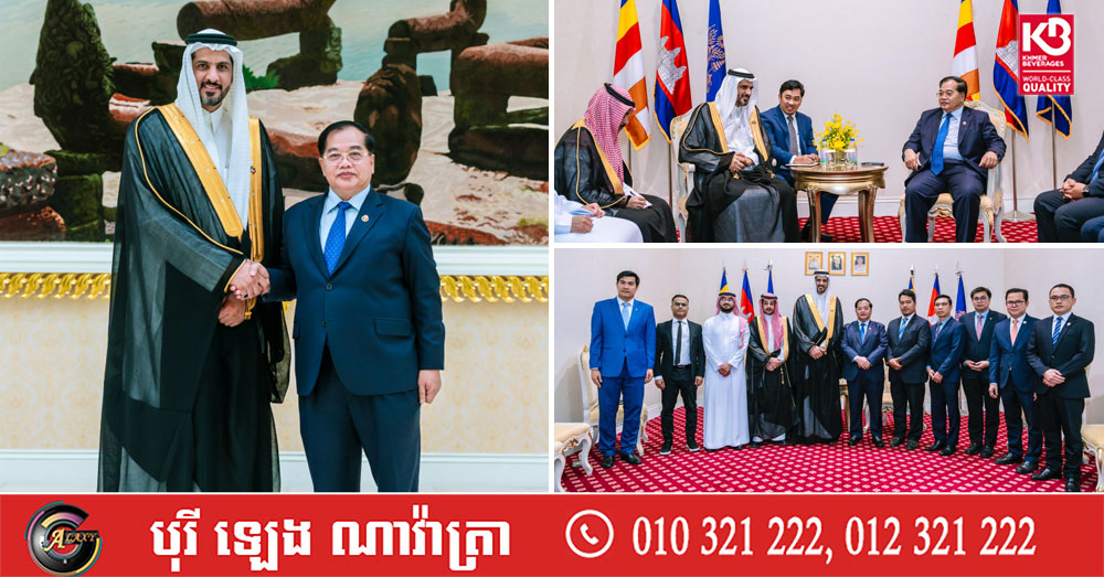 (ភ្នំពេញ)៖ នារសៀលថ្ងៃទី៩ ខែកុម្ភៈ ឆ្នាំ២០២៦នេះ លោកបណ្ឌិត អូស្មាន ហាស្សាន់ ទេសរដ្ឋមន្ត្រីទទួលបន្ទុកបេសកកម្មពិសេស បានអញ្ជើញទទួលជួបពិភាក្សាការងារជាមួយលោក WALEED NASSER ALSHEHRI ប្រធានក្រុមប្រឹក្សាធុរកិច្ចអារ៉ាប៊ីសាអូឌីត-កម្ពុជា នៃសភាពាណិជ្ជកម្មព្រះរាជាណាចក្រអារ៉ាប៊ីសាអូឌីត នៅវិមានសន្តិភាព។