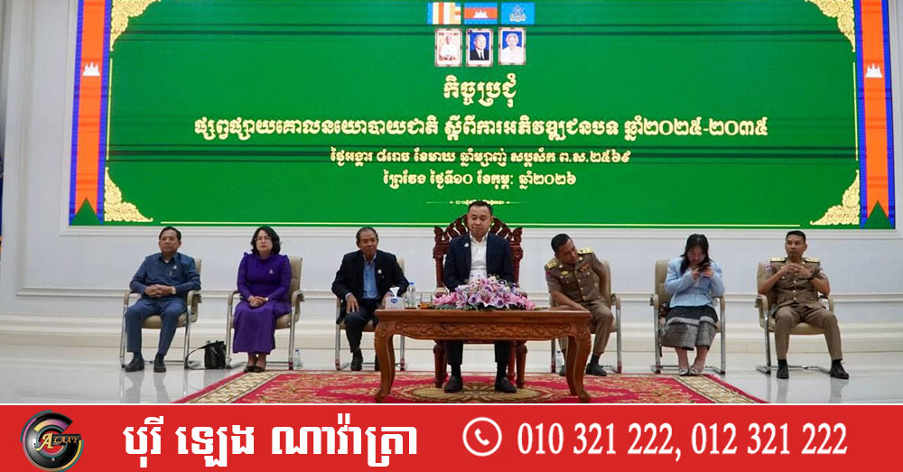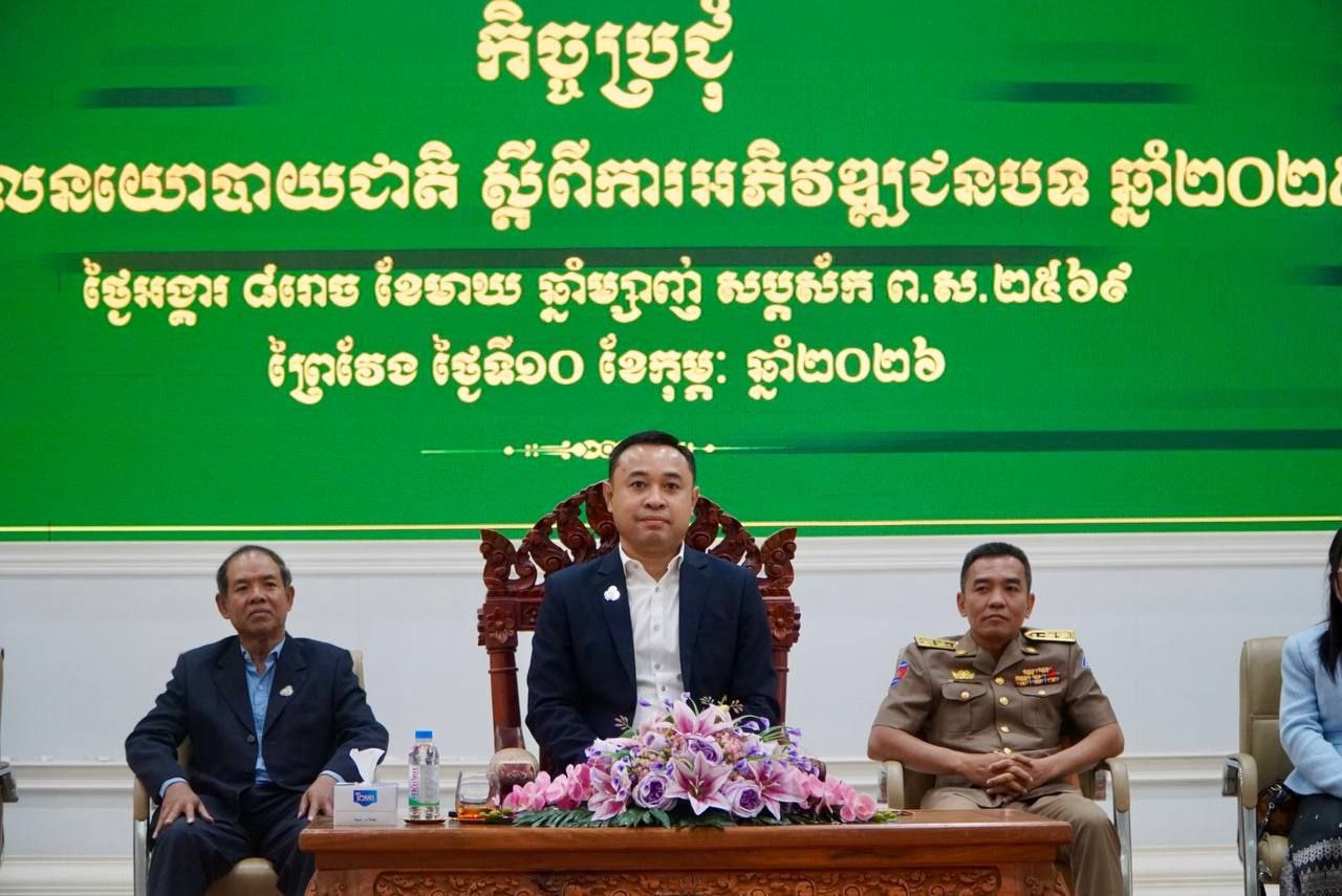 (ព្រៃវែង)៖ លោក ជួប រតនា រដ្ឋលេខាធិការ តំណាងលោក ឆាយ ឫទ្ធិសែន រដ្ឋមន្ត្រីក្រសួងអភិវឌ្ឍន៍ជនបទនៅថ្ងៃទី១០ ខែកុម្ភៈ ឆ្នាំ២០២៦ បានដឹកនាំកិច្ចប្រជុំផ្សព្វផ្សាយ «គោលនយោបាយជាតិស្តីពីការអភិវឌ្ឍជនបទ ឆ្នាំ២០២៥-២០៣៥»។