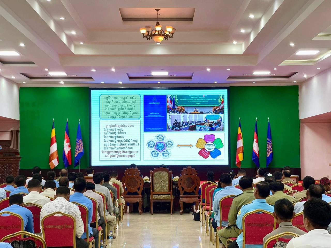 ថ្លែងក្នុងកិច្ចប្រជុំផ្សព្វផ្សាយនេះដែរ លោកបណ្ឌិត ចាន់ ដារ៉ុង បានលើកឡើងថា រាជរដ្ឋាភិបាលនីតិកាលទី៧ នៃរដ្ឋសភា បាននឹងកំពុងបន្តខិតខំអភិវឌ្ឍប្រទេសជាតិឱ្យកាន់តែរីកចម្រើនបន្ថែមទៀត ដោយបានដាក់ចេញយុទ្ធសាស្ត្រ បញ្ចកោណដំណាក់កាលទី១ ក្រោមបាវចនា «កំណើន ការងារ សមធម៌ ប្រសិទ្ធភាព និងចីរភាព» ដែលមានអាទិភាពគន្លឹះចំនួន ៥គឺ «មនុស្ស ផ្លូវ ទឹក ភ្លើង និងបច្ចេកវិទ្យា»។