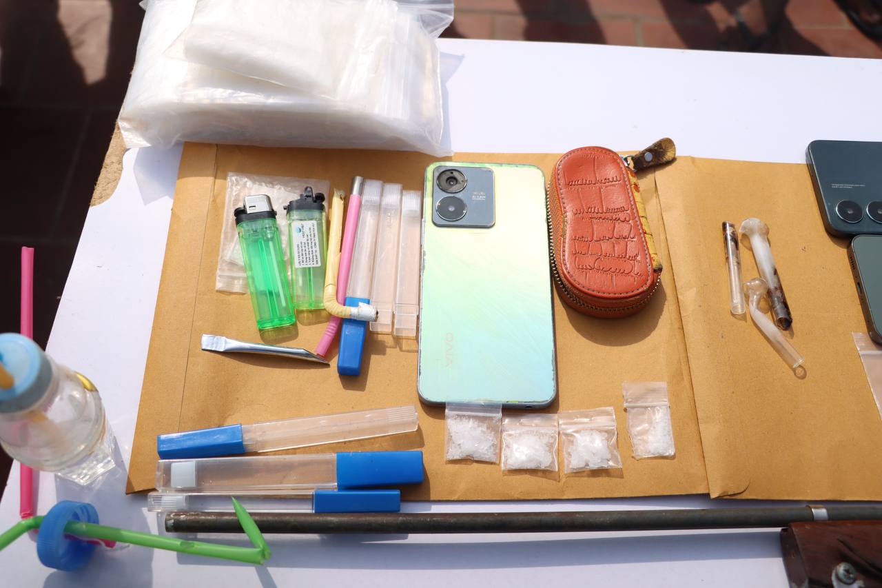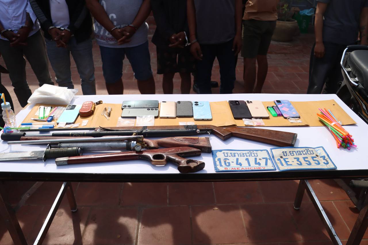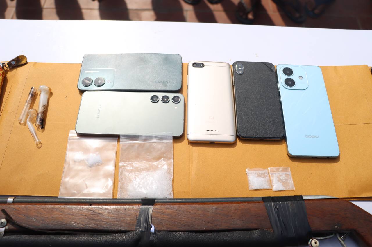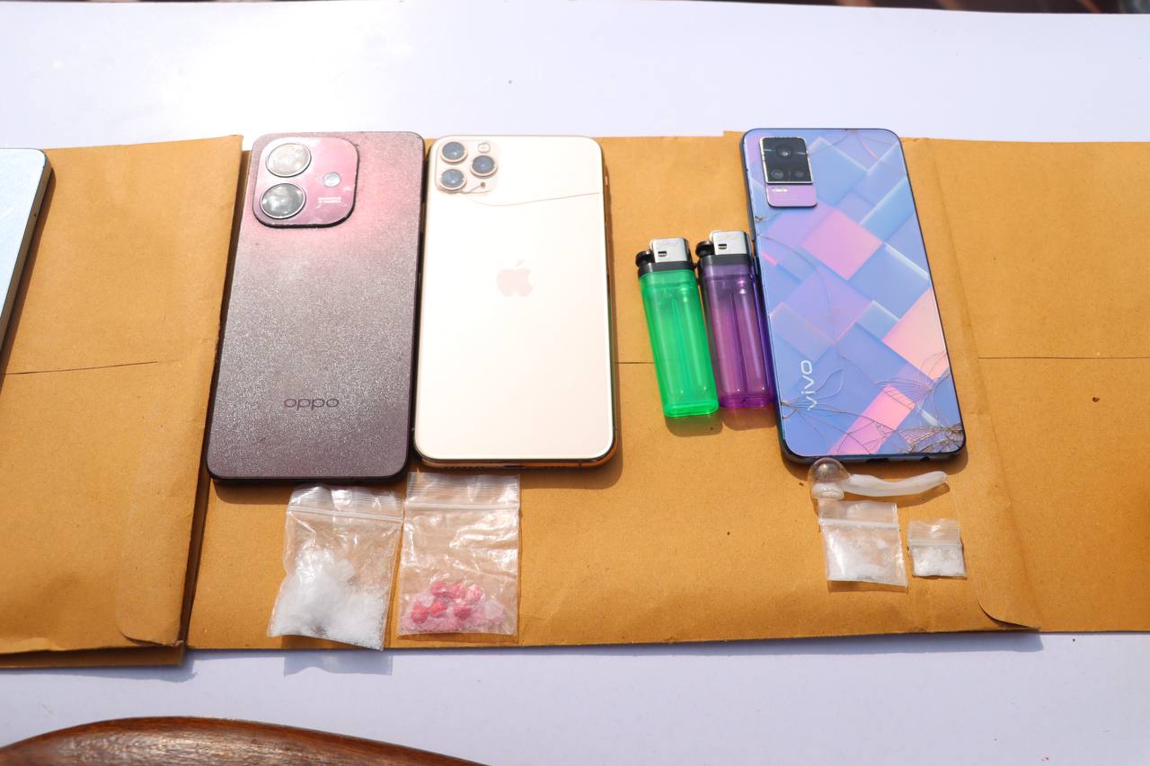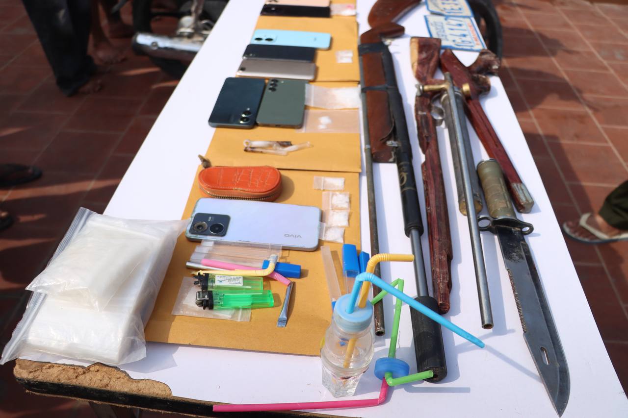 កម្លាំងបានដកហូតវត្ថុតាងរួមមាន៖ គ្រឿងញៀនប្រភេទម្ស៉ៅក្រាមពណ៌សថ្លា (ICE) ចំនួន ១២កូនថង់កិប ទម្ងន់ ២០,៧៤ក្រាម គ្រឿងញៀនប្រភេទថ្នាំគ្រាប់រាងមូលពណ៌ក្រហមក្បឿង (WY) ចំនួន០១កូនថង់កិប ស្មើនឹង ០៦គ្រាប់ ទម្ងន់ ១ក្រាម,ម៉ូតូ ចំនួន ០៦គ្រឿង,ទូរស័ព្ទ ចំនួន ០៩គ្រឿង, ផ្លាកលេខម៉ូតូ ចំនួន០២សន្លឹក, កាំភ្លើងស្នប់កែច្នៃ ចំនួន០៣ដើម, កាំបិតស្នៀត ចំនួន០១ដើម រួមនឹងសម្ភារៈសម្រាប់ប្រើប្រាស់គ្រឿងញៀនមួយចំនួន ហើយនាំមកកាន់មូលដ្ឋានកងរាជអាវុធហត្ថក្រុងដើម្បីសួរនាំតាមនីតិវិធី។