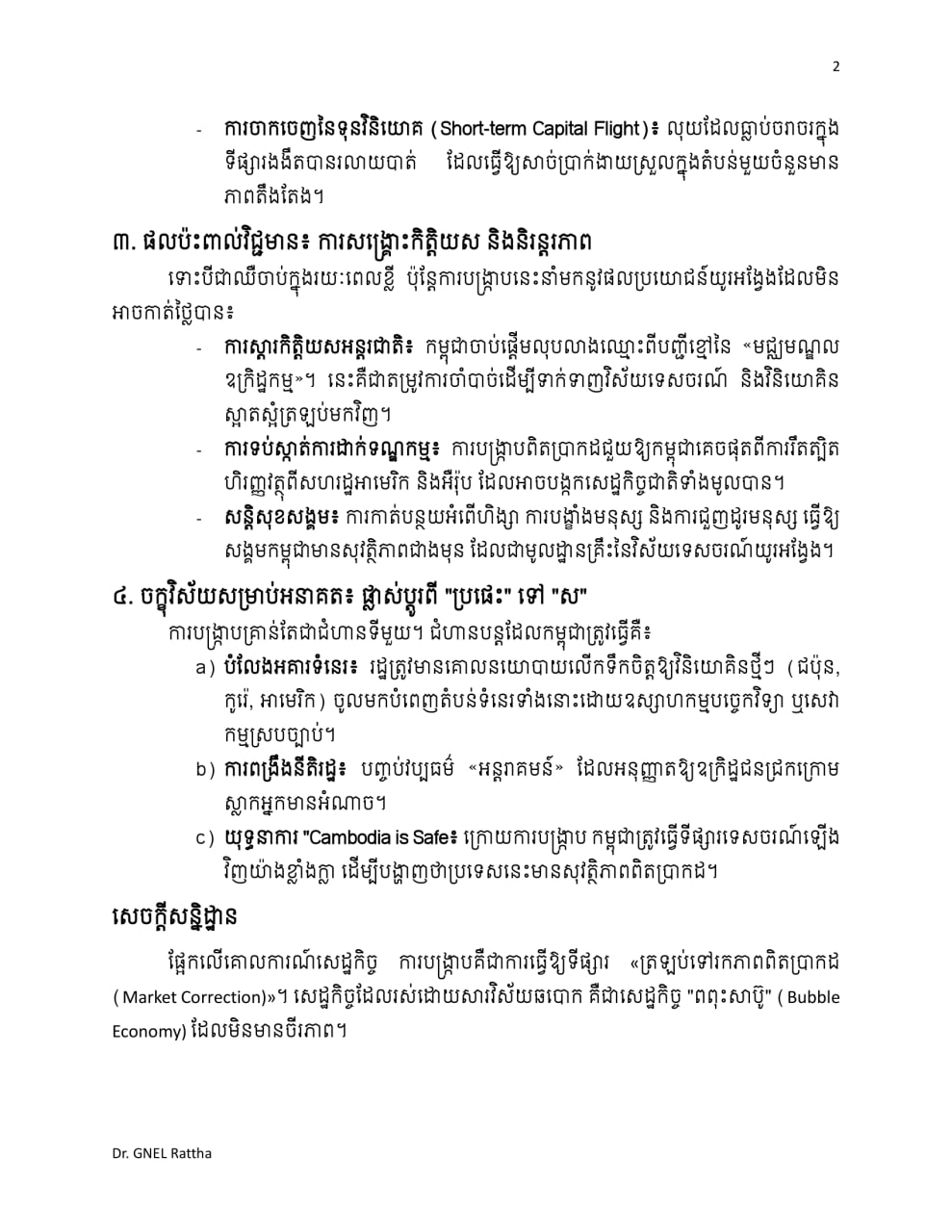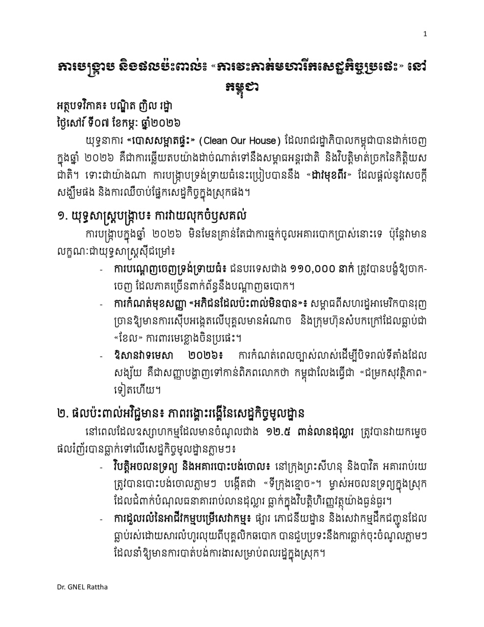 (ភ្នំពេញ)៖ បន្ទាប់ពីឃើញរាជរដ្ឋាភិបាល ដាក់ចេញវិធានការបង្ក្រាបឧក្រិដ្ឋកម្មឆបោកតាមប្រព័ន្ធបច្ចេកវិទ្យា (Online Scams) លោកបណ្ឌិត ញិល រដ្ឋា អ្នកសិក្សាស្រាវជ្រាវមកពីប្រទេសរុស្ស៉ី បានលើកឡើងថា វិធានការនេះ នឹងជួយផ្តល់ប្រយោជន៍ឲ្យកម្ពុជាដូចជា ជួយទាញវិនិយោគិនគុណភាពរយៈពេលវែង, ទប់ស្កាត់ការដាក់ទណ្ឌកម្មសេដ្ឋកិច្ច និងមានសុវត្ថិភាពសន្តិសុខសង្គម ដែលទាញវិស័យទេសចរណ៍ឲ្យងើបឡើងរយៈពេលយូរអង្វែង។