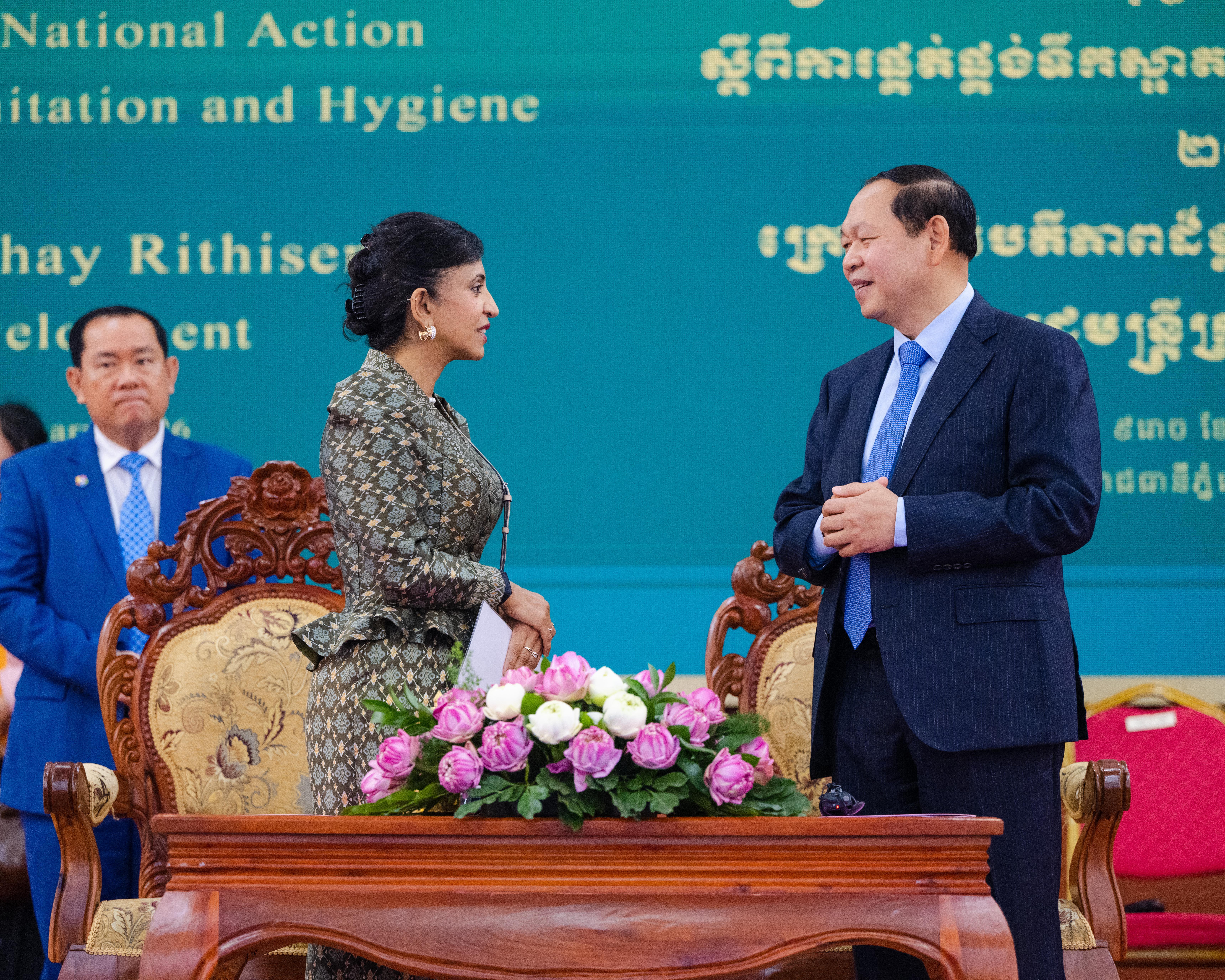 នាឱកាសនេះដែរ លោក Michele Paba ប្រធានកម្មវិធីទឹកស្អាត និងអនាម័យ នៃអង្គការ UNICEF ប្រចាំនៅកម្ពុជា និង លោកស្រី YASMIN SIDDIQI នាយិកាប្រចាំប្រទេសកម្ពុជានៃធនាគារអភិវឌ្ឍន៍អាស៊ី (ADB) ជាមួយនឹងការប្តេជ្ញាចិត្តក្នុងការគាំទ្រ និងសហការយ៉ាងជិតស្និទ្ធជាមួយក្រសួង និងដៃគូនានា ដើម្បីរៀបចំផែនការយុទ្ធសាស្រ្តជាតិ និងផែនការសកម្មភាពជាតិស្តីពី ការផ្គត់ផ្គង់ទឹកស្អាត និងការលើកកម្ពស់អនាម័យជនបទ ឆ្នាំ២០២៦-២០៣៣ ឱ្យសម្រេចបានជោគជ័យ និងស្របតាមផែនការយុទ្ធសាស្ដ្ររបស់រដ្ឋាភិបាល។