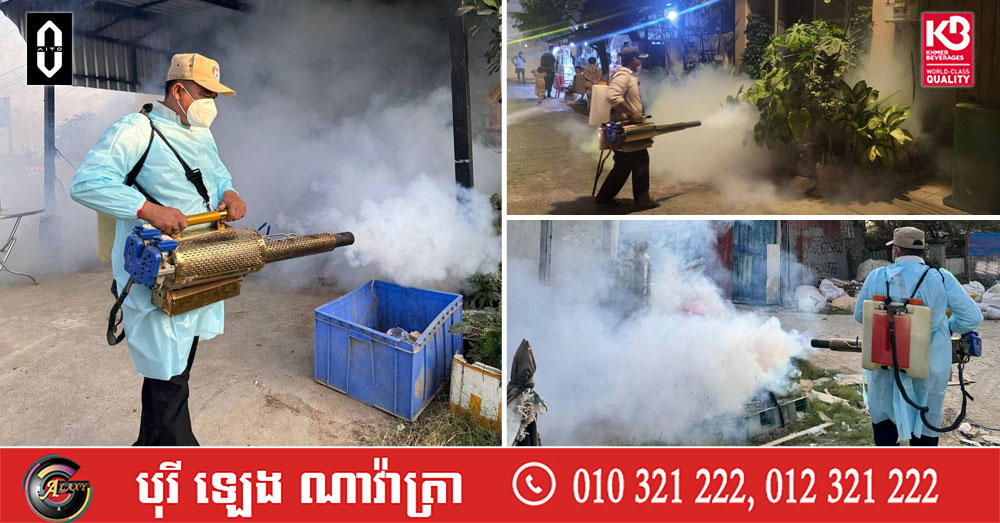 មន្ត្រីសុខាភិបាលរាជធានីភ្នំពេញ បន្តបាញ់ថ្នាំមូសនៅតាមមូលដ្ឋានជុំវិញលំនៅដ្ឋានពលរដ្ឋ ដើម្បីទប់ស្កាត់ការចម្លងជំងឺគ្រុនឈាម