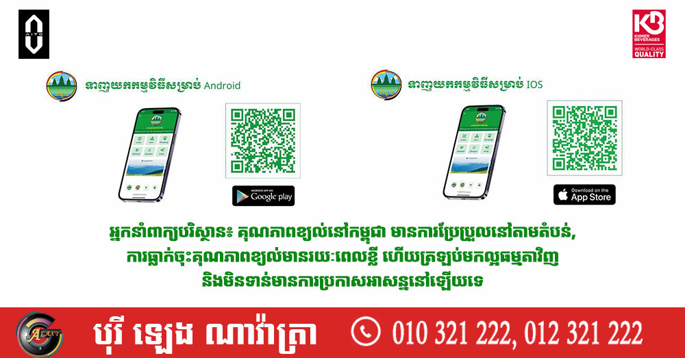 អ្នកនាំពាក្យក្រសួងបរិស្ថាន បានស្នើឱ្យសាធារណជន តាមដានព័ត៌មានស្តីពៅគុណភាពខ្យល់ ជាផ្លូវការ ដែលក្រសួងបានចេញផ្សាយ តាមរយៈវេបសាយ www.airquality.moe.gov.kh និងកម្មវិធីទូរស័ព្ទដៃ (APP) ឈ្មោះ CGS SPA ឬទាញយកកម្មវិធីសម្រាប់ Android និង IOS បានក្រប់ពេលវេលា។