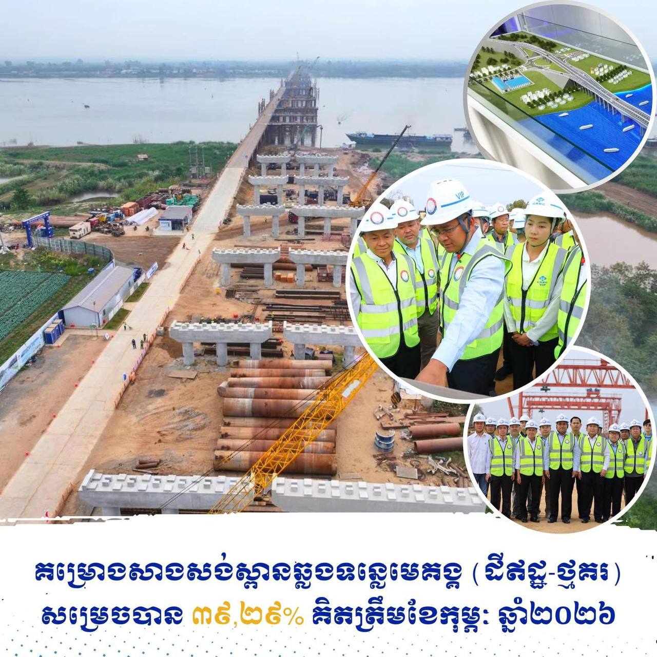 គម្រោងសាងសង់ស្ពានឆ្លងទន្លេមេគង្គ (ដីឥដ្ឋ-ថ្មគរ) សម្រេចបានជិត ៤០%, រដ្ឋមន្រ្តី ប៉េង ពោធិ៍នា ណែនាំឱ្យក្រុមហ៊ុនអនុវត្តការងារឱ្យស្របតាមផែនការ និងស្តង់ដារបច្ចេកទេស
