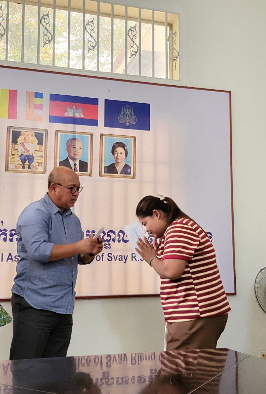 (ស្វាយរៀង)៖ ក្រុមការងារតំណាងរាស្ត្រមណ្ឌលស្វាយរៀងនៅនៅថ្ងៃទី១១ ខែកុម្ភៈ ឆ្នាំ២០២៦ បាននាំថវិការបស់សម្ដេចមហារដ្ឋសភាអធិការធិបតី ឃួន សុដារី ប្រធានរដ្ឋសភាកម្ពុជាចំនួន ៥លានរៀល មកប្រគល់ជូនគ្រួសារ វីរៈកងទ័ពជួរមុខ ដែលបានពលីនៅសមរភូមិមុខ និងវីរៈកងទ័ពកងទ័ពដែលថៃចាប់ខ្លួន ហើយបានបញ្ជូនមកមាតុភូមិវិញ។
