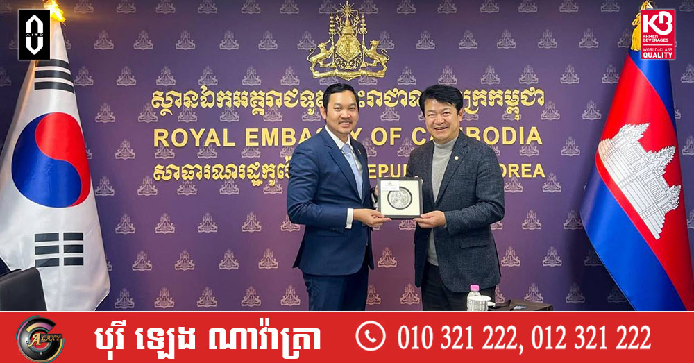 (កូរ៉េខាងត្បូង)៖ លោក ឃួន ផុនរតនៈ ឯកអគ្គរាជទូតកម្ពុជាប្រចាំសាធារណរដ្ឋកូរ៉េ នារសៀលថ្ងៃទី១១ ខែកុម្ភៈ ឆ្នាំ២០២៦ បានទទួលជួបសម្តែងការគួរសម និងពិភាក្សាការងារជាមួយលោក Bok Ki-wang សមាជិកសភាក្រុងអាសាន់ នៅស្ថានទូតកម្ពុជា ក្នុងទីក្រុងសេអ៊ូល។