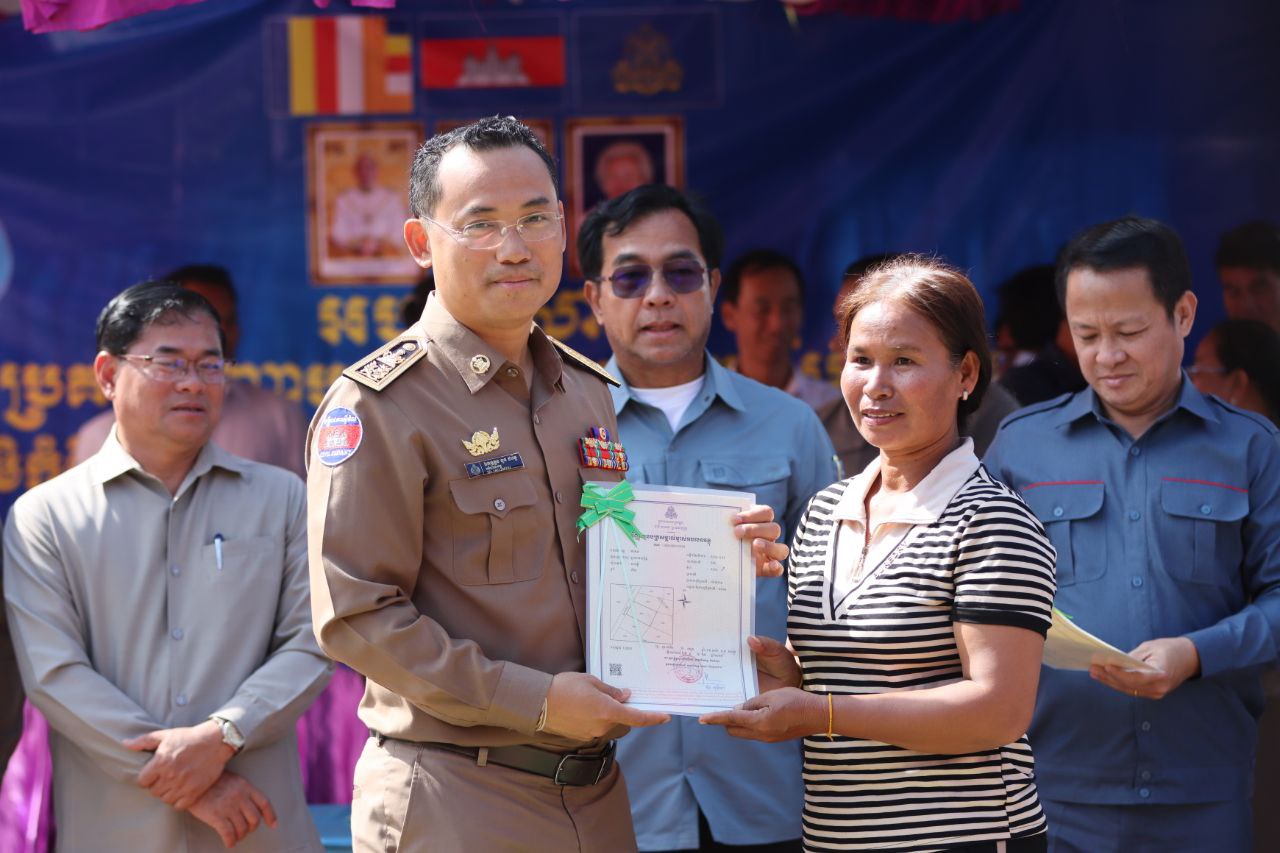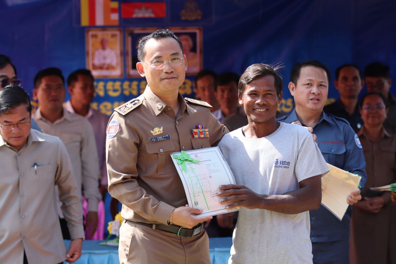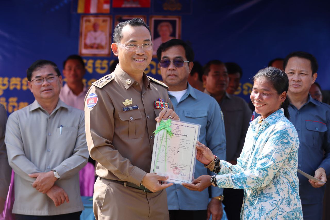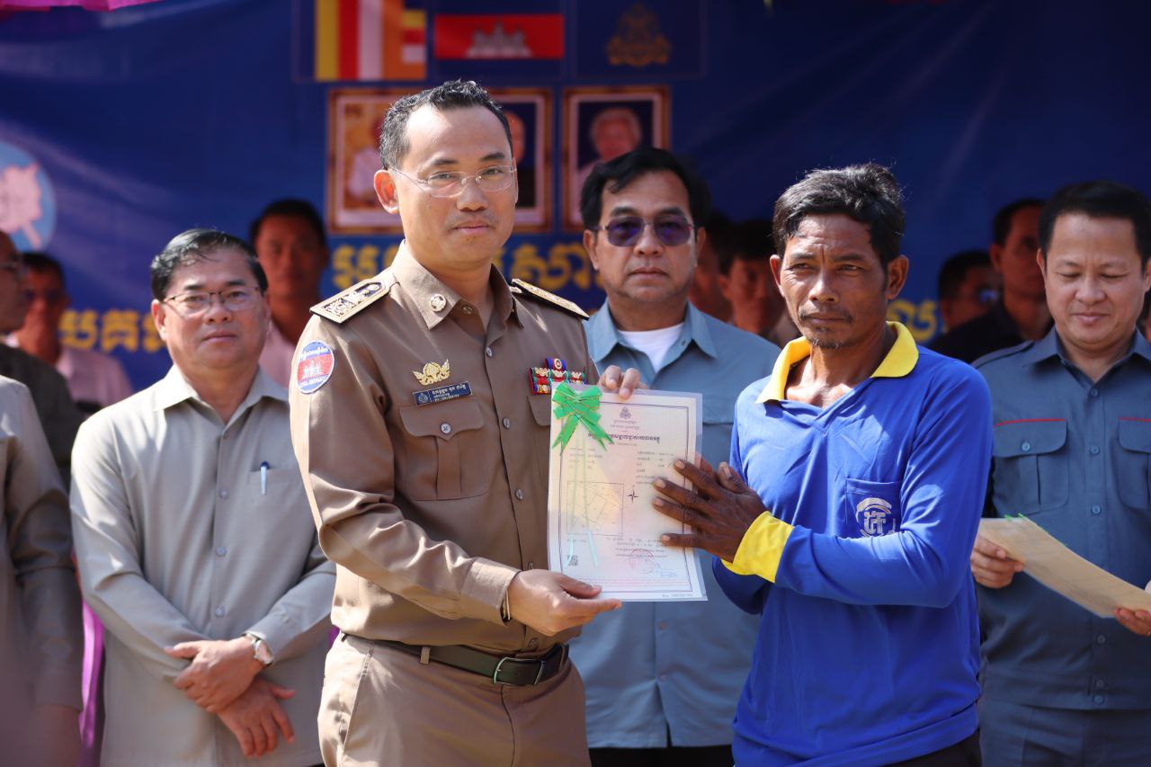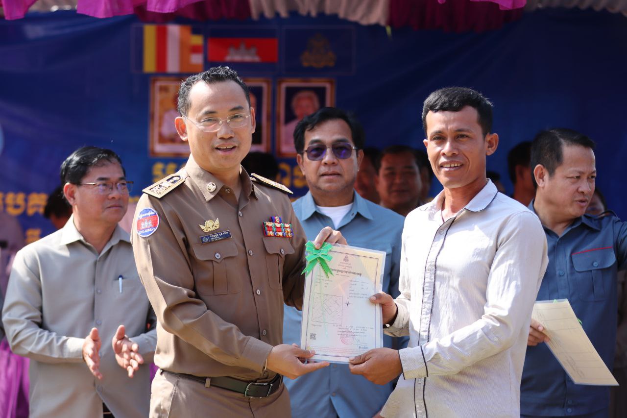 លោកអភិបាលខេត្ត បន្តថា ការចែកបណ្ណកម្មសិទ្ធិដីធ្លីនាពេលនេះ បានរួមចំណែកយ៉ាងសំខាន់ ក្នុងការដោះស្រាយបញ្ហាទំនាស់ដីធ្លី និងជាការផ្ដល់ឲ្យប្រជាពលរដ្ឋមានសិទ្ធិកម្មកាន់កាប់ដីធ្លីរបស់ខ្លួនបានត្រឹមត្រូវស្របតាមច្បាប់ ក្រោមការគិតគូរយ៉ាងហ្មត់ចត់របស់រាជរដ្ឋាភិបាល ដែលមានសម្តេចធិបតី ហ៊ុន ម៉ាណែត ជានាយករដ្ឋមន្រ្តីនៃកម្ពុជា ដែលបាន និងកំពុងអនុវត្តយ៉ាងសកម្មលើគោលនយោបាយដីធ្លី ជូនដល់ប្រជាពលរដ្ឋ និងដើម្បីផលប្រយោជន៍របស់ប្រជាពលរដ្ឋយ៉ាងពិតប្រាកដ។