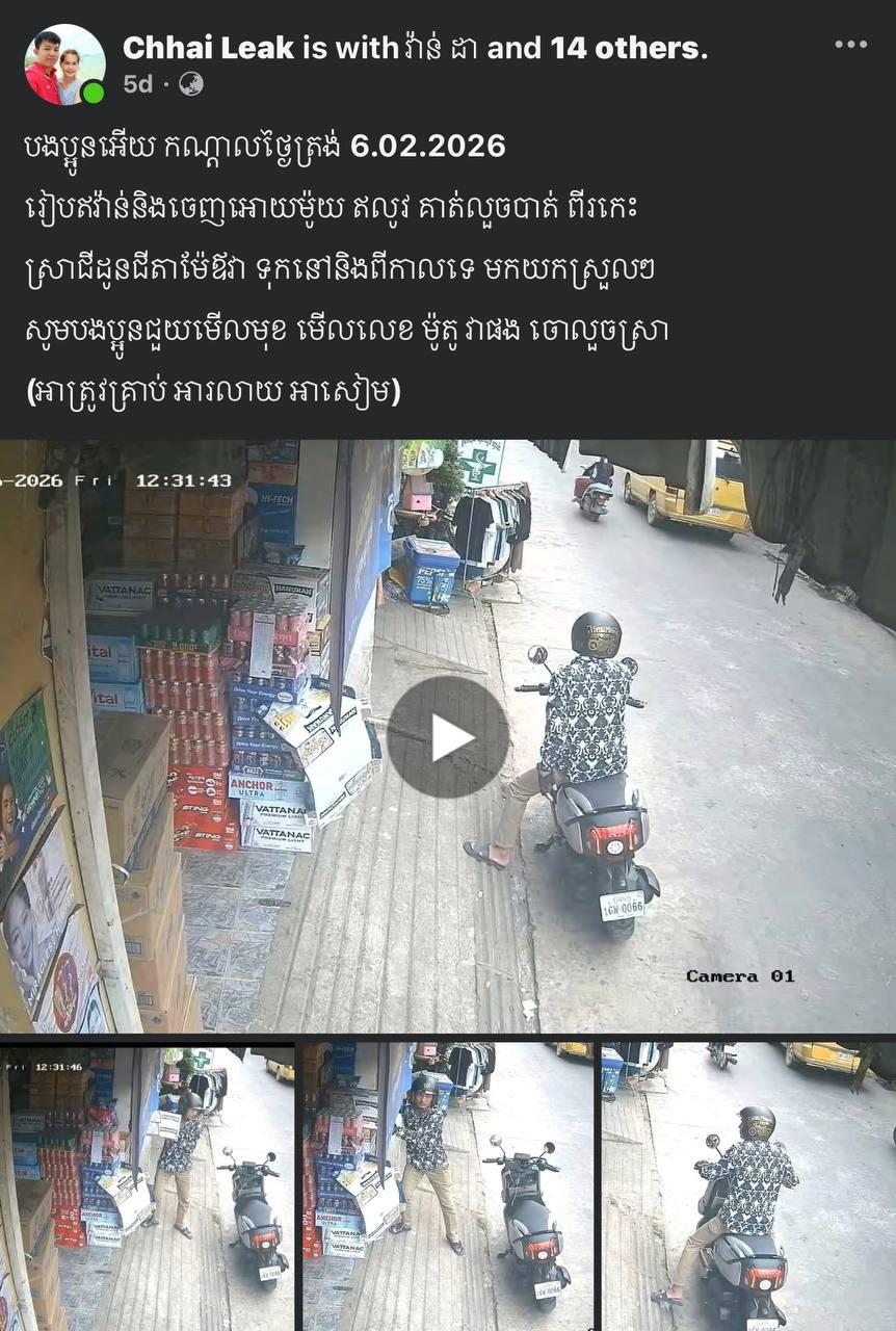 (ភ្នំពេញ)៖ នៅថ្ងៃទី០៦ ខែកុម្ភៈ ឆ្នាំ២០២៦ ថ្មីៗនេះ មានគណនីហ្វេសប៊ុកឈ្មោះ Chhai leak បានបង្ហោះសារ មានរូបថត និងវីដេអូនៃការលួចស្រាបៀរ ហនុមាន ភ្ជាប់ជាមួយនឹងការសរសេររៀបរាប់យ៉ាងហួសចិត្តថា «បងប្អូនអើយ កណ្តាលថ្ងៃត្រង់ 6.02.2026 រៀបឥវ៉ាន់នឹងចេញរឱ្យម៉ូយ ឥឡូវគាត់លួចបាត់ពីរកេស ស្រាជីដូនជីតាម៉ែឪវាទុកនៅនឹងពីកាលទេ មកយកស្រួលៗ សូមបងប្អូនជួយមើលមុខវា មើលលេខម៉ូតូវាផង ចោរលួចស្រា»។
