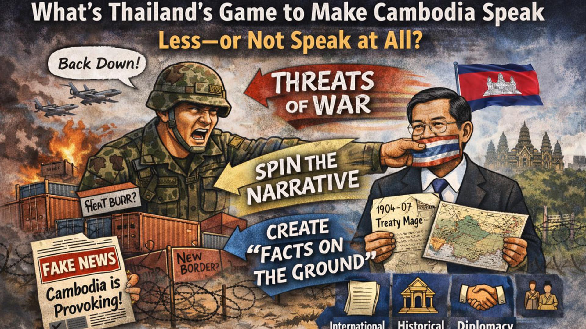 ក្នុងពេលដែលរាជរដ្ឋាភិបាលកម្ពុជា បន្តអះអាងថា ព្រំដែនកម្ពុជា-ថៃ ជាព្រំដែនអន្តរជាតិ ដែលត្រូវបានការពារដោយច្បាប់អន្តរជាតិ និងត្រូវដោះស្រាយដោយសន្តិវិធីតាមយន្តការ JBC និងផ្លូវច្បាប់ សំណួរគន្លឹះពេលនេះ មិនមែនថាតើ «កម្ពុជាគួរនិយាយខ្លាំងប៉ុណ្ណា» ទេ ប៉ុន្តែថា តើថៃកំពុងលេងហ្គេមអ្វី ដើម្បីចង់ឲ្យកម្ពុជានិយាយតិច ឬចង់បិទមាត់មិនឱ្យកម្ពុជានិយាយអ្វីទាំងអស់?