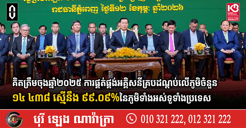 (ភ្នំពេញ)៖ លោក យឹម វិសិដ្ឋ ប្រធានអាជ្ញាធរអគ្គិសនីកម្ពុជា បានឱ្យដឹងថា នៅចុងឆ្នាំ២០២៥ ការផ្គត់ផ្គង់អគ្គិសនីបានគ្របដណ្តប់លើភូមិចំនួន ១៤,៤៣៨ កើនឡើងចំនួន ៣៩០ភូមិ ប៉ុន្តែបើគិតជាភាគរយប្រៀបធៀបជាមួយស្ថិតិចំនួនភូមិសរុបថ្មី បានថយចុះពី ៩៩.១៥% មក ៩៩.០៩%។