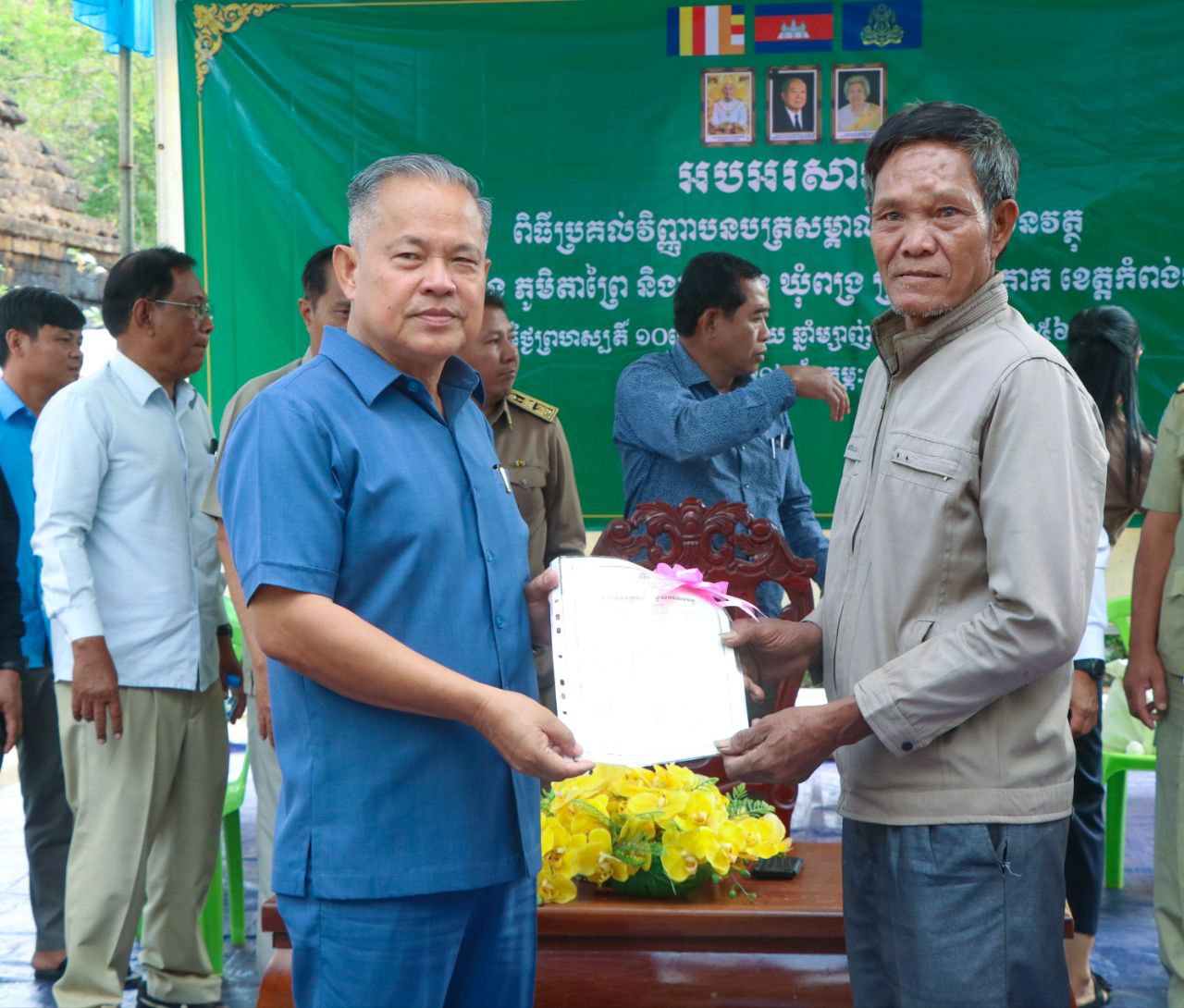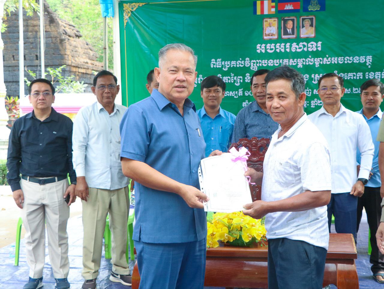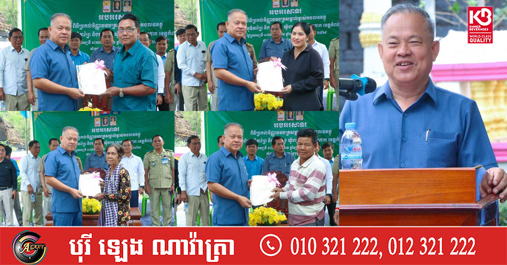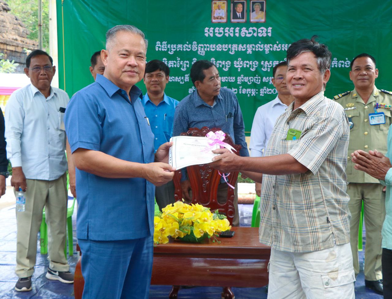 អភិបាលស្រុកតាំងគោក ចុះប្រគល់វិញ្ញាបនបត្រសម្គាល់អចលនវត្ថុជាង ១ ០០០បណ្ណ ដល់ប្រជាពលរដ្ឋ ៣ភូមិ នៃឃុំពង្រ