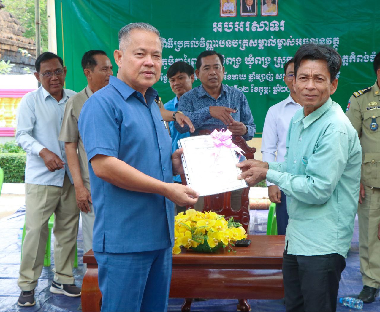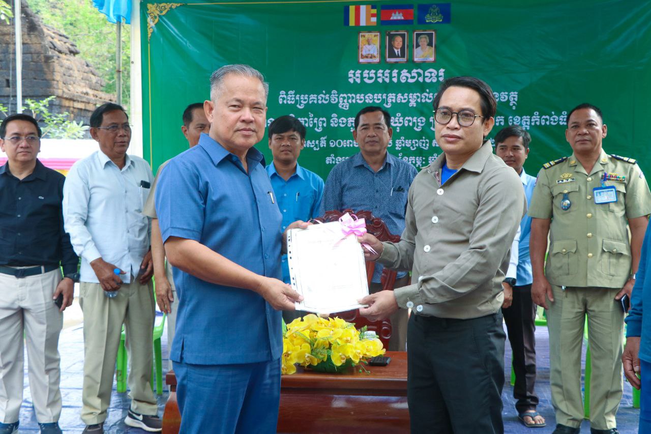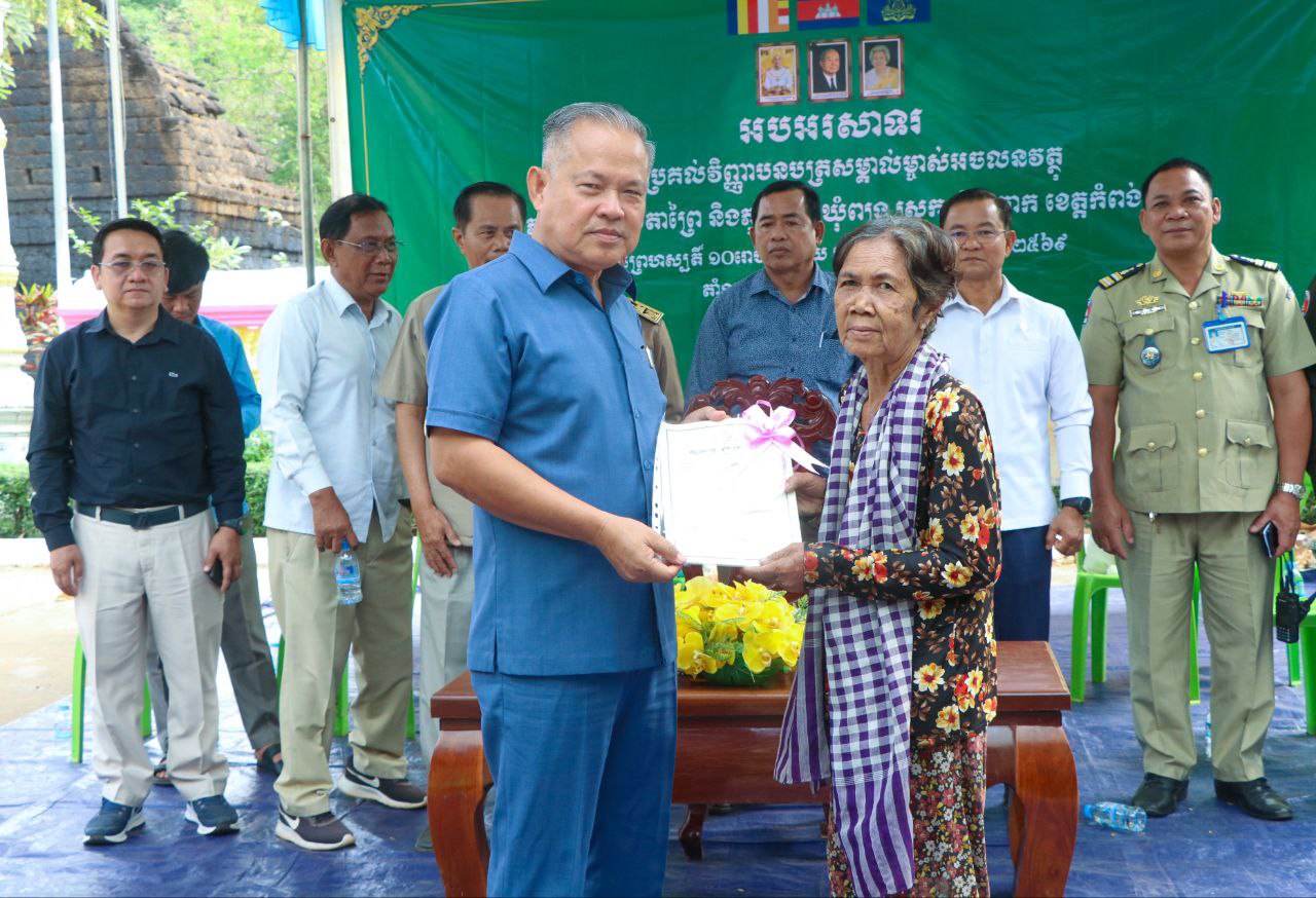អភិបាលស្រុកតាំងគោក ចុះប្រគល់វិញ្ញាបនបត្រសម្គាល់អចលនវត្ថុជាង ១ ០០០បណ្ណ ដល់ប្រជាពលរដ្ឋ ៣ភូមិ នៃឃុំពង្រ