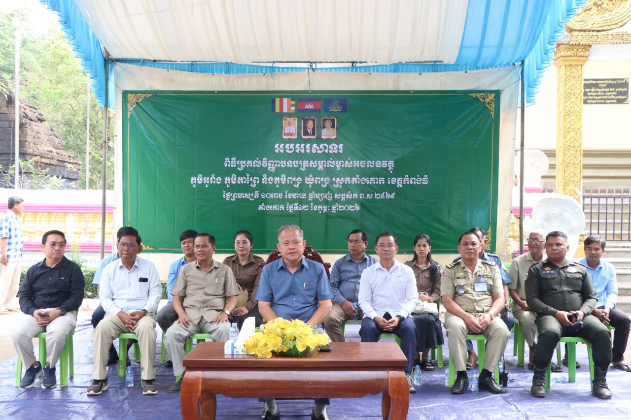 (កំពង់ធំ)៖ លោក ហាក់ ម៉ុងហួត អភិបាលស្រុកតាំងគោក នៅព្រឹកថ្ងៃទី១២ ខែកុម្ភ: ឆ្នាំ២០២៦នេះ បានអញ្ជើញជាអធិបតីចែកវិញ្ញាបនបត្រសម្គាល់ម្ចាស់អចលនវត្ថុចំនួន ១ ១០៦បណ្ណ សម្រាប់ ភូមិពង្រ ភូមិតាព្រៃ ភូមិអូរាំង ឃុំពង្រ ស្រុកតាំងគោក ខេត្តកំពង់ធំ ដោយមានការចូលរួមពីសំណាក់ លោកអភិបាលរងស្រុក ព្រមទាំងអាជ្ញាធរមូលដ្នានគ្រប់លំដាប់ថ្នាក់ មន្ត្រីក្រុមការងារចុះបញ្ជីដីធ្លី ព្រមទាំងបងប្អូនប្រជាពលរដ្ឋជាច្រើនរូបទៀត។