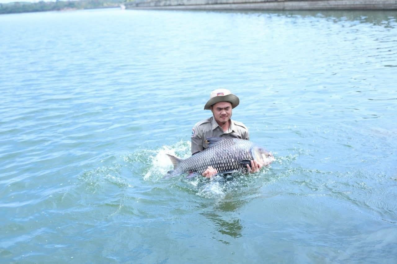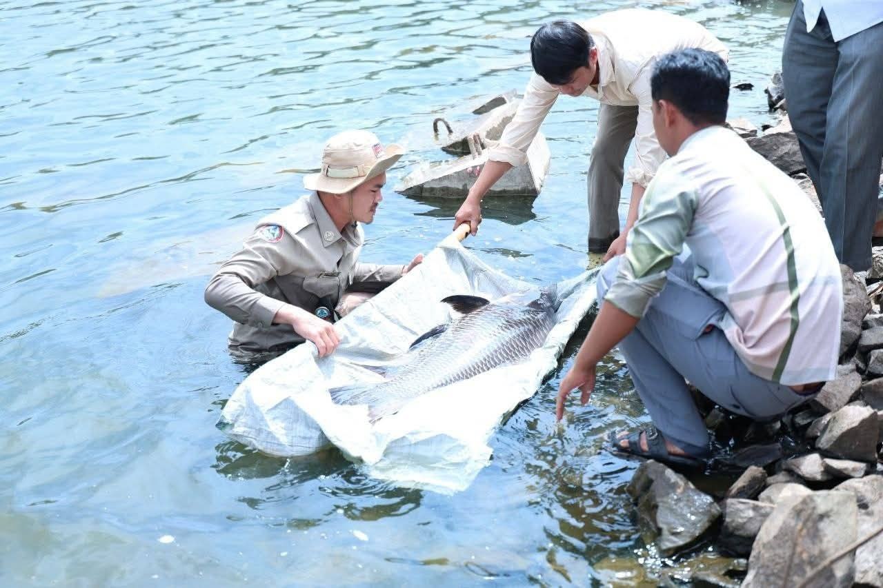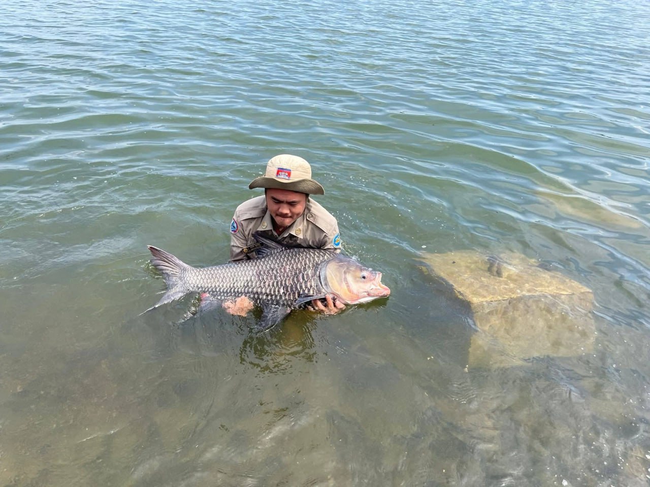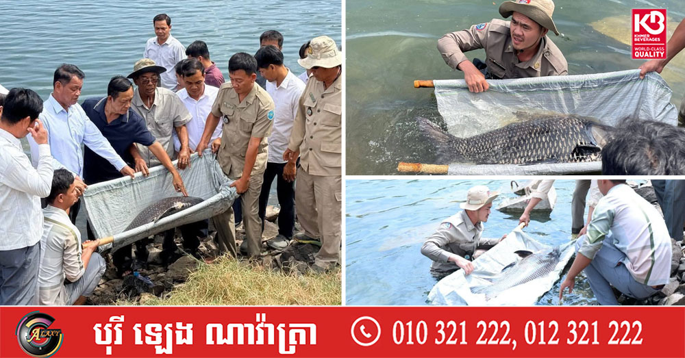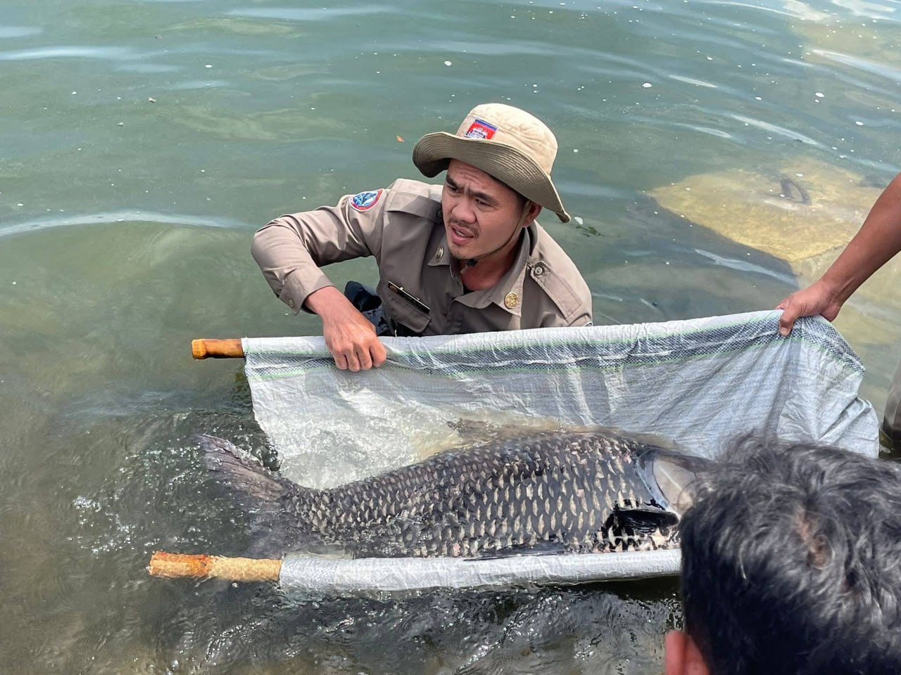 ត្រីគល់រាំងចំនួន ២ក្បាល មានទម្ងន់ ៧០គីឡូក្រាម ត្រូវបានលែងចូលអាងទឹកខេត្តត្បូងឃ្មុំ ដើម្បីអភិរក្ស