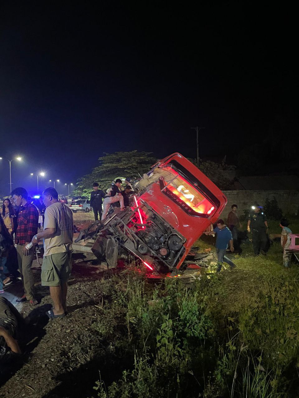 (កំពង់ឆ្នាំង)៖ មនុស្ស២នាក់បានស្លាប់ និង៤នាក់ទៀត រងរបួសធ្ងន់ដោយសារករណីគ្រោះថ្នាក់ចរាចរណ៍ដែលបានបង្កឡើងរវាងរថយន្តធន់ធំម៉ាក HYUNDAI សណ្ដោងរឺម៉ក បុកជាមួយរថយន្តដឹកអ្នកដំណើរនៅវេលាម៉ោង ០០៖០៩នាទីឈានចូលថ្ងៃទី១២ ខែកុម្ភៈ ឆ្នាំ២០២៦ នៅតាមបណ្ដោយផ្លូវជាតិលេខ៥ ចន្លោះគីឡូម៉ែត្រលេខ៧៩-លេខ៨០ ស្ថិតក្នុងភូមិអណ្ដូងជ្រៃ ឃុំអណ្ដូងស្នាយ ស្រុករលាប្អៀរ ខេត្តកំពង់ឆ្នាំង។
