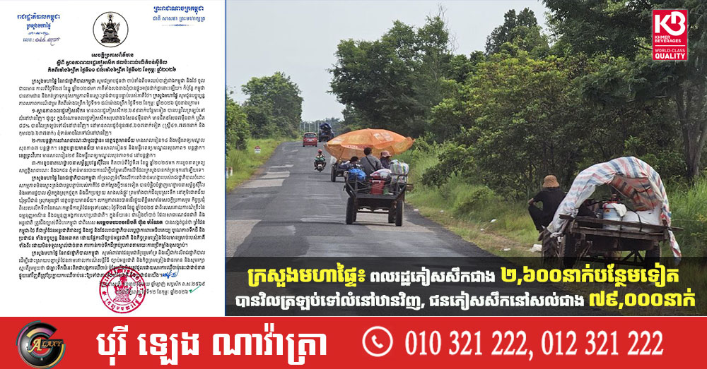 ក្រសួងមហាផ្ទៃ៖ ពលរដ្ឋភៀសសឹកជាង២,៦០០នាក់បន្ថែមទៀត បានវិលត្រឡប់ទៅលំនៅឋានវិញ, ជនភៀសសឹកនៅសល់ជាង ៧៩,០០០នាក់ (Video inside)