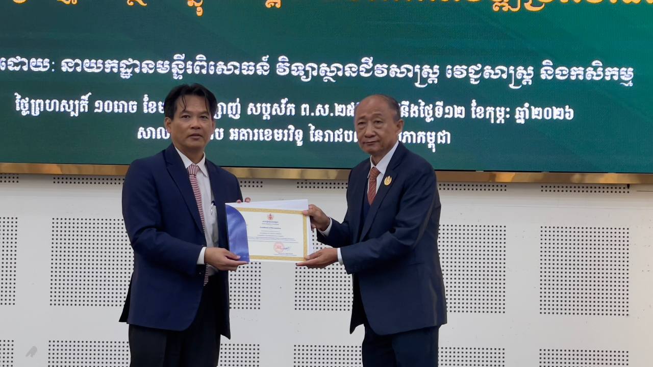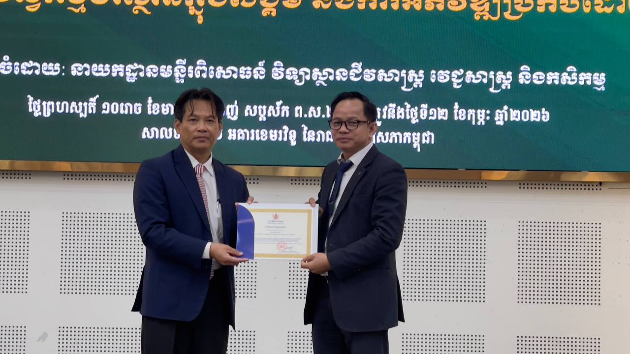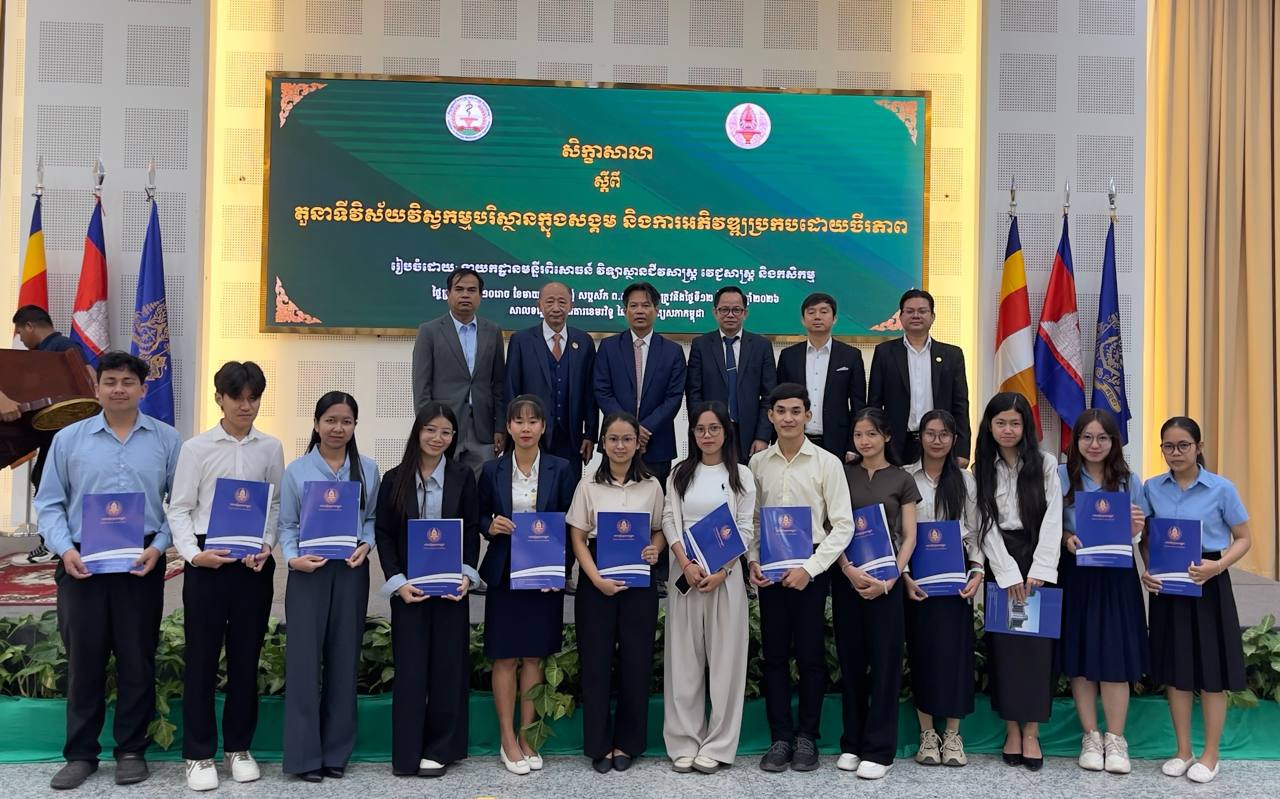 (ភ្នំពេញ)៖ រាជបណ្ឌិត្យសភាកម្ពុជា នៅថ្ងៃទី១២ ខែកុម្ភៈ ឆ្នាំ២០២៦នេះ បានបើកសិក្ខាសាលាស្ដីពី តួនាទីវិស័យវិស្វកម្មបរិស្ថានក្នុងសង្គម និងការអភិវឌ្ឍប្រកបដោយចីរភាព ដែលរៀបចំដោយ នាយកដ្ឋានមន្ទីរពិសោធន៍ វិទ្យាស្ថានជីវសាស្ត្រ វេជ្ជសាស្ត្រ និងកសិកម្ម នៃរាជបណ្ឌិត្យសភាកម្ពុជា សាលទន្លេសាប នៃអគារខេមរវិទូ។ ពិធីនេះ បានធ្វើឡើងក្រោមអធិបតីភាព លោកបណ្ឌិតសភាចារ្យ សុខ ទូច ប្រធានរាជបណ្ឌិត្យសភាកម្ពុជា លោកបណ្ឌិត យង់ ពៅ អគ្គលេខាធិការ នៃរាជបណ្ឌិត្យសភាកម្ពុជា ព្រមទាំងលោកគ្រូ អ្នកគ្រូ និងសិស្សនិស្សិតជាច្រើនរូប។
