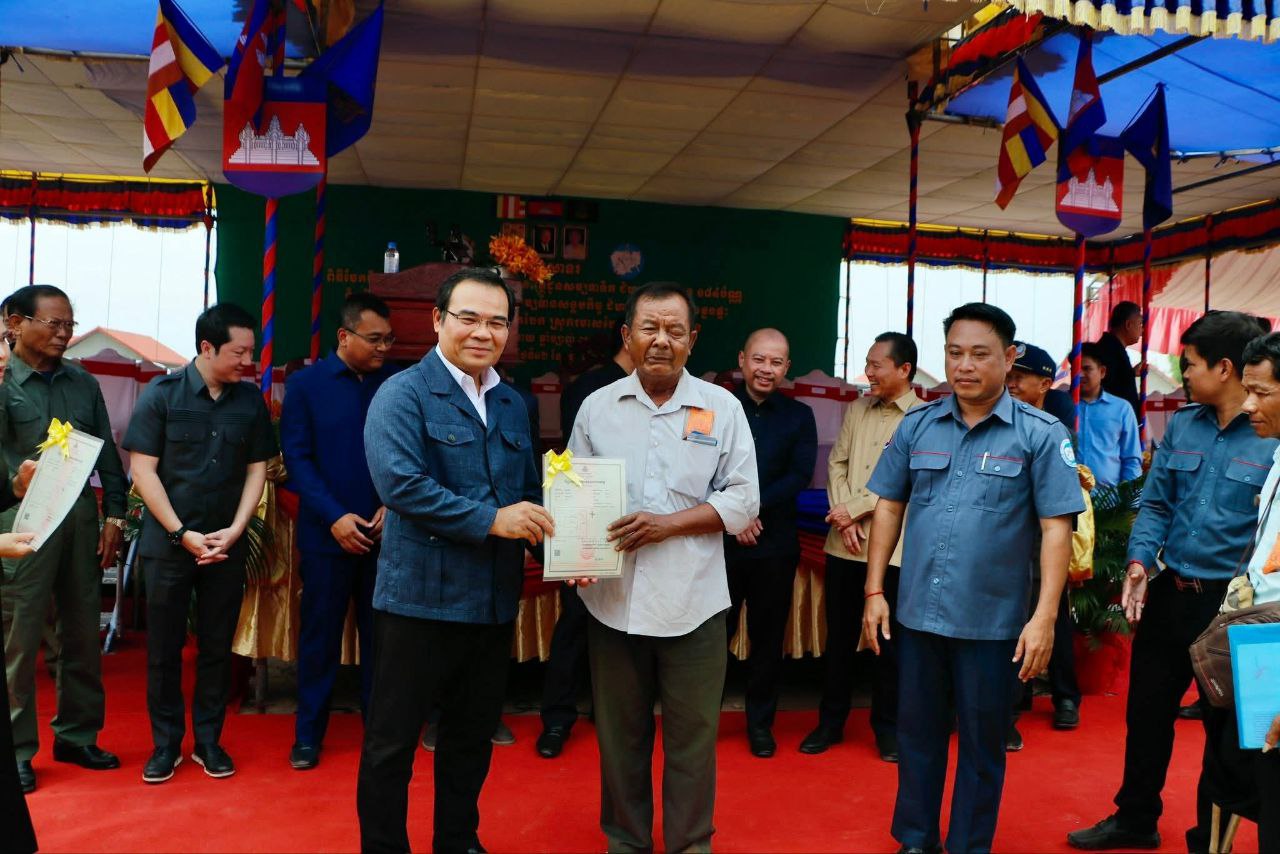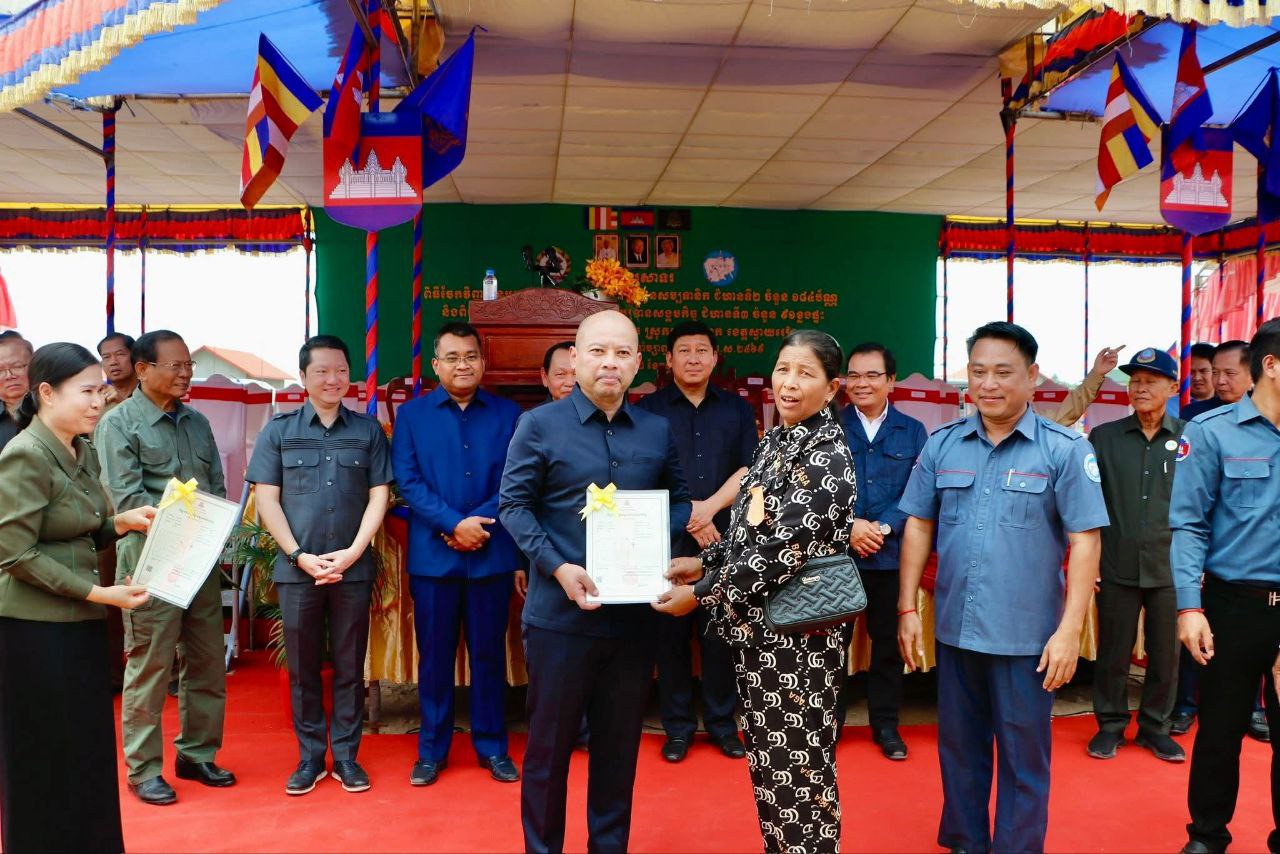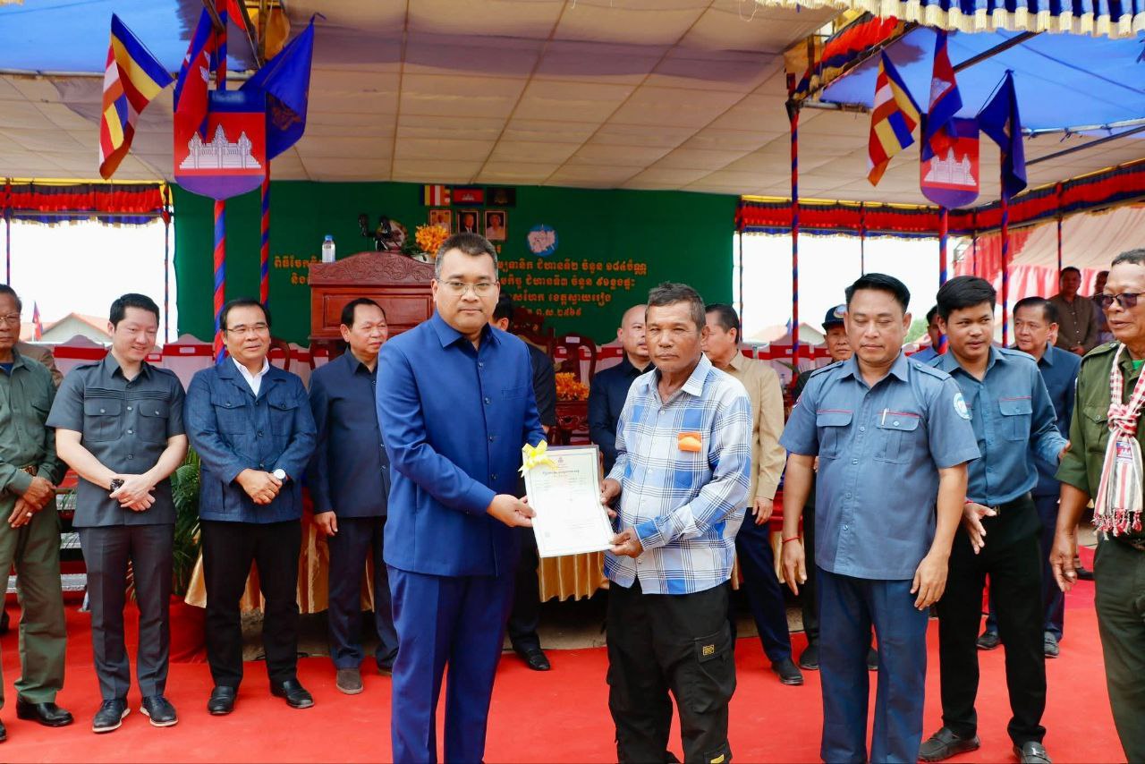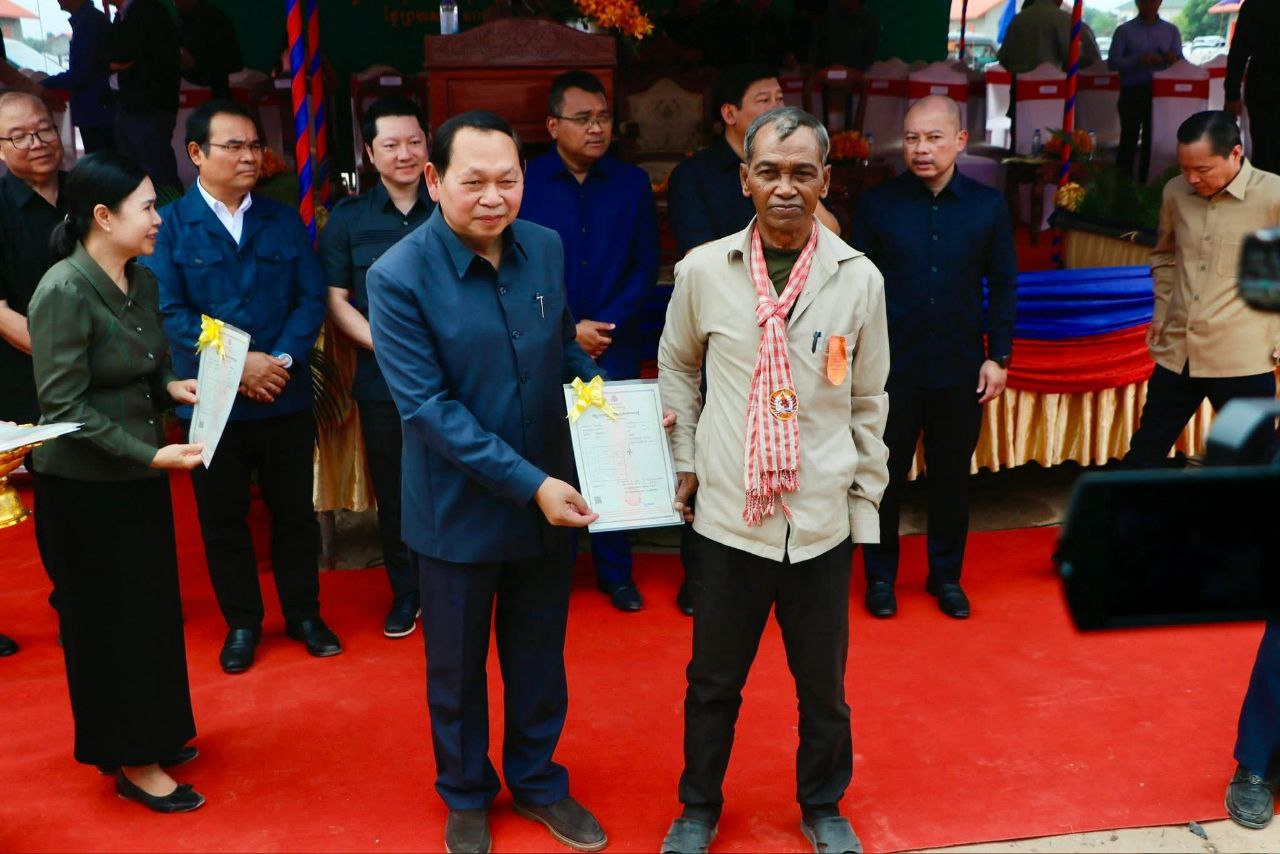 (ស្ចាយរៀង)៖ លោក សាយ សំអាល់ ឧបនាយករដ្ឋមន្ត្រី រដ្ឋមន្ត្រីក្រសួងរៀបចំដែនដី នគរូបនីយកម្ម និងសំណង់ នៅថ្ងៃទី១២ ខែកុម្ភៈ ឆ្នាំ២០២៦នេះ បានអញ្ជើញប្រគល់វិញ្ញាបនបត្រសម្គាល់ម្ចាស់អចលនវត្ថុ និងផ្ទះសម្បទានសង្គមកិច្ចជូនដល់ប្រជាពលរដ្ឋជាសម្បទានិក នៅទីតាំងដីសម្បទានសង្គមកិច្ច ក្នុងភូមិជីកដី ឃុំអណ្តូងត្របែក ស្រុករមាសហែក។