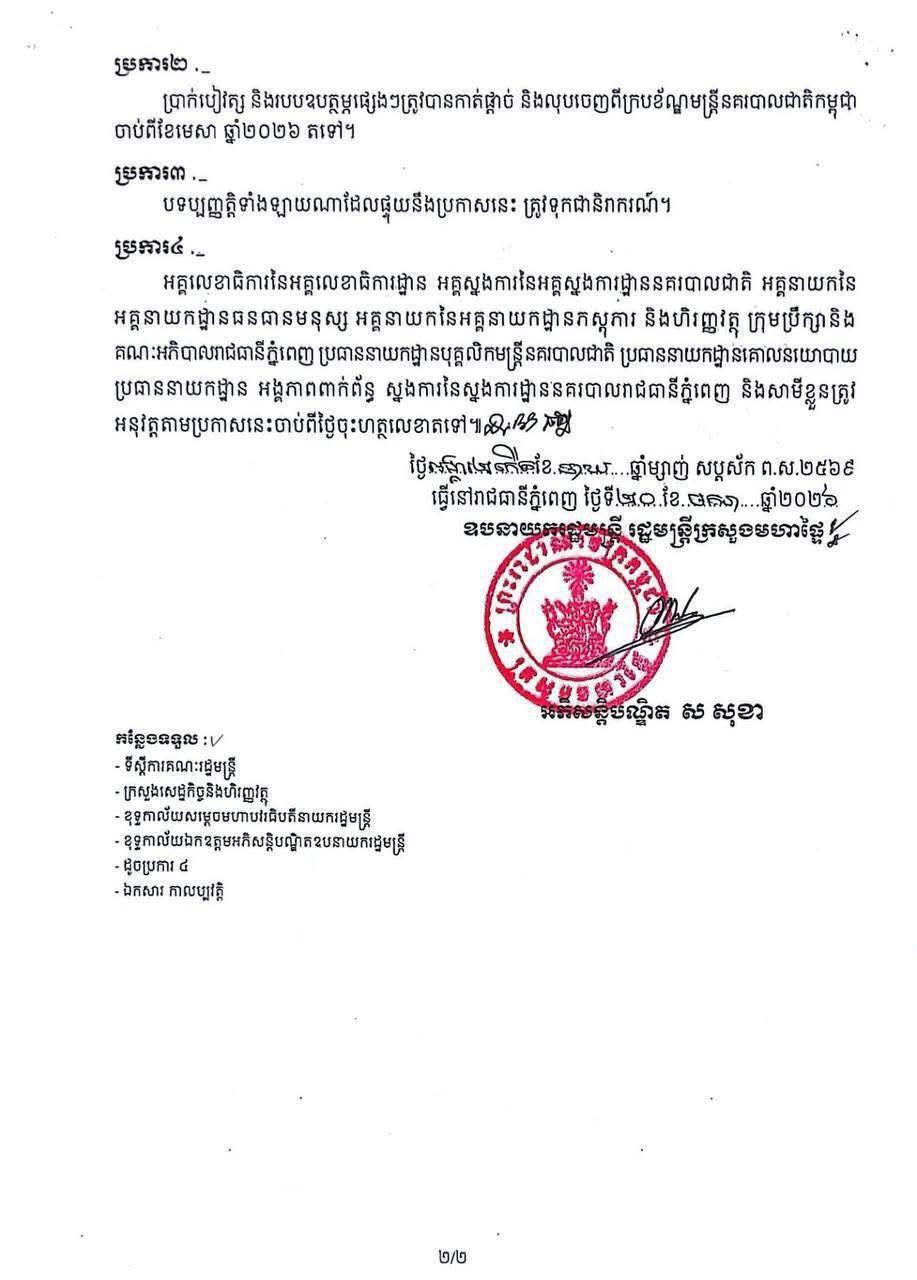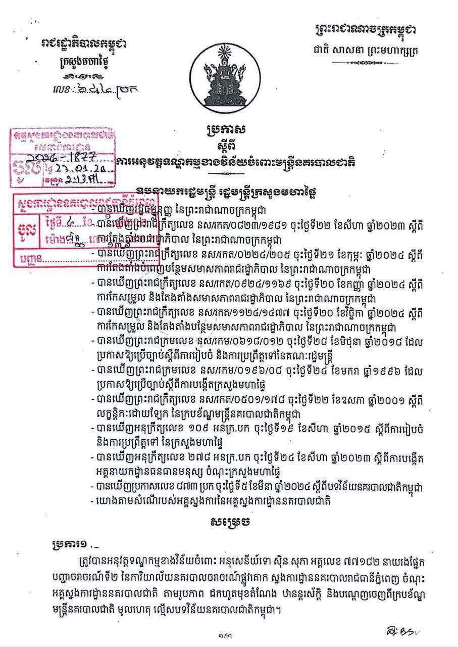 ប្រកាសស្តីពីការបណ្តេញលោក ស៊ិន សុភា ចេញពីក្របខណ្ឌនេះ ត្រូវបានធ្វើឡើងតាំងពីថ្ងៃទី២០ ខែមករា ឆ្នាំ២០២៦មកម្ល៉េះ តែទើបនឹងត្រូវបានគេទម្លាយជាសាធារណៈនៅថ្ងៃនេះ៕