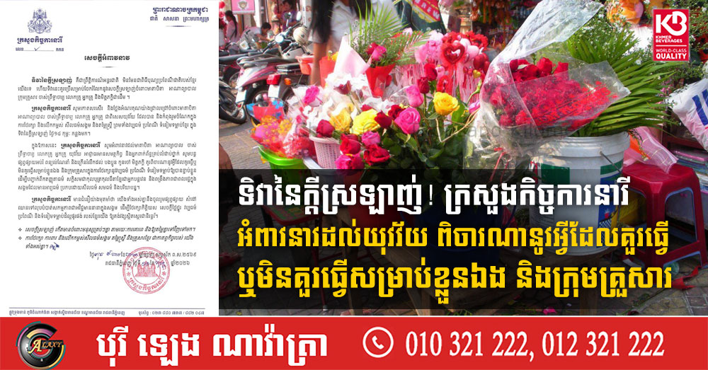 ទិវានៃក្តីស្រឡាញ់! ក្រសួងកិច្ចការនារី អំពាវនាវដល់យុវវ័យ ពិចារណានូវអ្វីដែលគួរធ្វើ ឬមិនគួរធ្វើសម្រាប់ខ្លួនឯង និងក្រុមគ្រួសារ