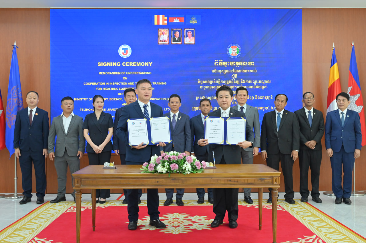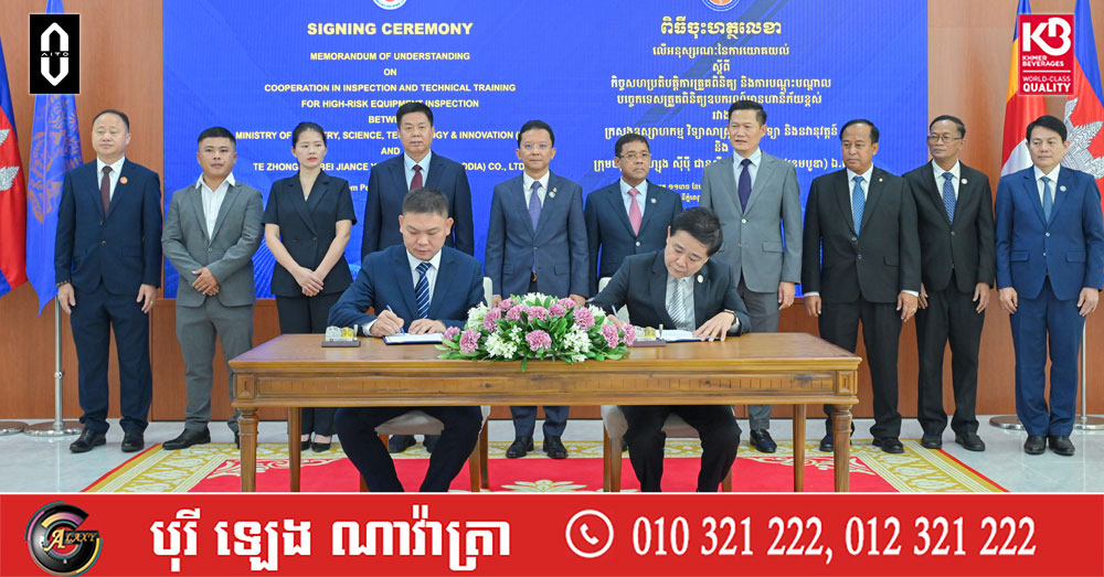 (ភ្នំពេញ)៖ ក្រសួងឧស្សាហកម្ម វិទ្យាសាស្ត្រ បច្ចេកវិទ្យា និងនវានុវត្តន៍ បានចុះអនុស្សរណៈនៃការយោគយល់គ្នា(MOU) ជាមួយ ក្រុមហ៊ុន តេ ហ្សុង ស៊ីប៉ី ជានស៊ី យ៉ានជីវ យ័ន (ខេមបូឌា) ឯ.ក ដើម្បីពង្រឹងកិច្ចសហប្រតិបត្តិការលើការត្រួតពិនិត្យ និងការបណ្តុះបណ្តាលបច្ចេកទេសត្រួតពិនិត្យឧបករណ៍មានហានិភ័យខ្ពស់ ព្រមទាំងជំរុញការប្រើប្រាស់បច្ចេកវិទ្យាប្រកបដោយសុវត្ថិភាពនៅតាមរោងចក្រ និងសិប្បកម្ម។