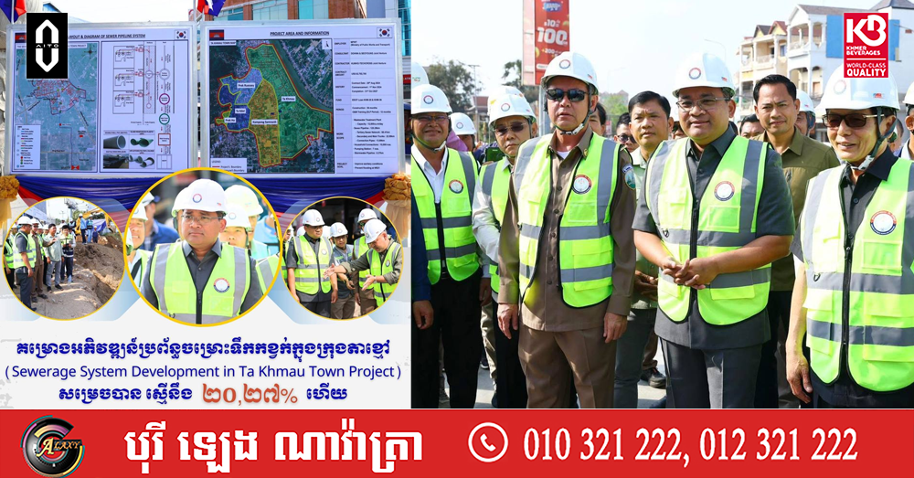 រដ្ឋមន្រ្តី ប៉េង ពោធិ៍នា ដឹកនាំជំនាញចុះពិនិត្យគម្រោងអភិវឌ្ឍន៍ប្រព័ន្ធចម្រោះទឹកកខ្វក់ក្នុងក្រុងតាខ្មៅ, ខណៈមកដល់ពេលនេះសម្រេចបានការសាងសង់បានជាង ២០%