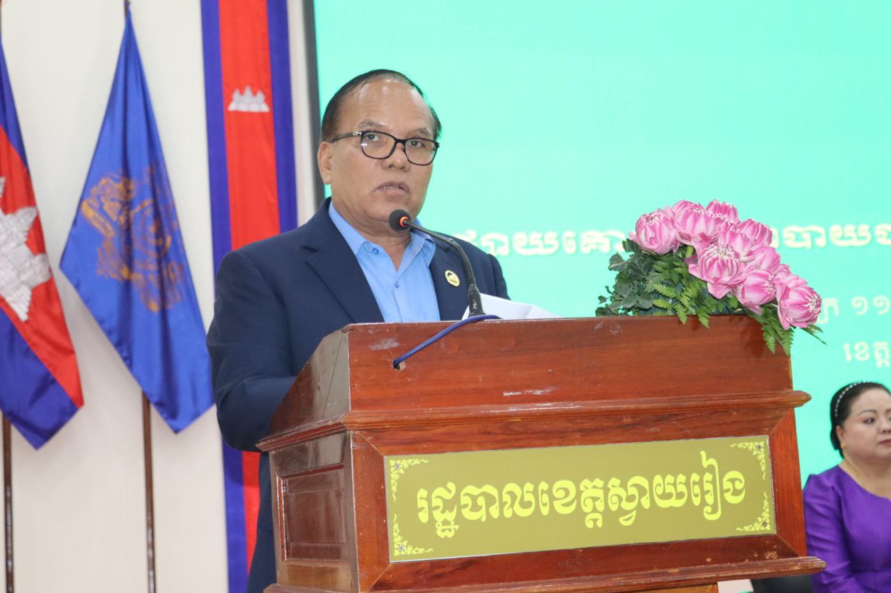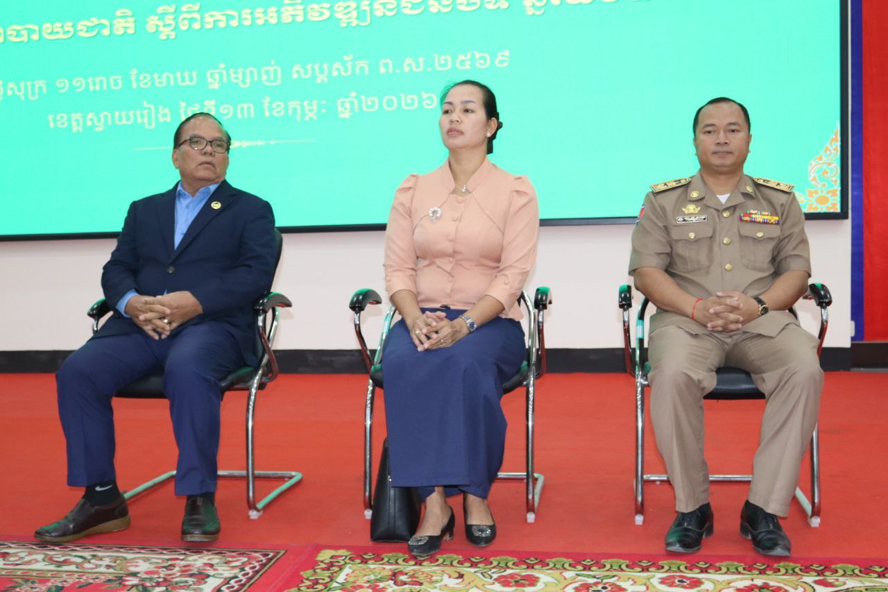 (ស្វាយរៀង)៖ លោក គុយ ឆាយ រដ្ឋលេខាធិការ តំណាងលោក ឆាយ ឫទ្ធិសែន រដ្ឋមន្ត្រីក្រសួងអភិវឌ្ឍន៍ជនបទ នៅរសៀលថ្ងៃទី១៣ ខែកុម្ភៈ ឆ្នាំ២០២៦ បានដឹកនាំកិច្ចប្រជុំផ្សព្វផ្សាយគោលនយោបាយជាតិស្តីពី ការអភិវឌ្ឍជនបទឆ្នាំ២០២៥-២០៣៥ នៅសាលាខេត្តស្វាយរៀង។