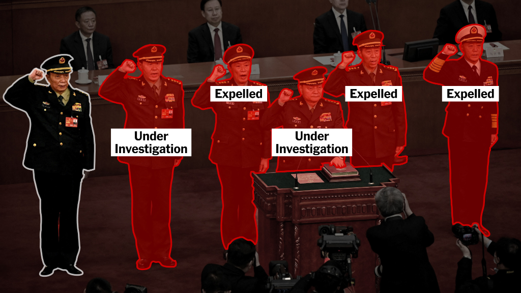 នៅក្នុងយុទ្ធនាការបោសសម្អាតផ្ទៃក្នុងយោធាចិន សមាជិកគណៈកម្មការយោធាមជ្ឈិមចិនម្ដងម្នាក់ៗត្រូវបានបណ្ដេញចេញពីតំណែង និងដាក់ឱ្យស្ថិតនៅក្រោមការស៊ើបអង្កេត។ ឧត្តមសេនីយ៍កំពូលចុងក្រោយរបស់ លោក ស៊ី ជីនពីងដែលត្រូវបានដាក់ឱ្យស្ថិតនៅក្រោមការស៊ើបអង្កេត គឺលោក Zhang Youxia ជាអនុប្រធានគណៈកម្មការយោធាមជ្ឈិម រួមទាំងឧត្តមសេនីយ៍ម្នាក់ទៀតគឺលោក Liu Zhenli។ ការណ៍នេះធ្វើឱ្យសមាជិកគណៈកម្មការយោធាមជ្ឈិមចិនទាំង៧រូប នៅសល់តែសមាជិក២រូបប៉ុណ្ណោះ ពោលគឺលោក ស៊ី ជីនពីងផ្ទាល់ដែលជាប្រធាន និងលោកឧត្តមសេនីយ៍ Zhang Shengmin។