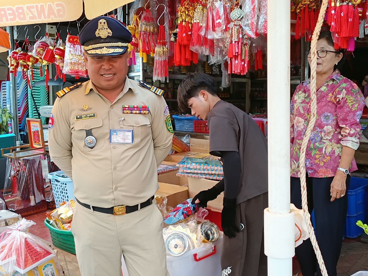 (កោះកុង)៖ ដោយមានការចង្អុលបង្ហាញពីលោកឧត្តមសេនីយ៍ស្នងការនគរបាលខេត្ត ក្នុងការរក្សាភាពស្ងៀមស្ងាត់ក្នុងឱកាសពិធីបុណ្យចូលឆ្នាំចិននិងវៀតណាម នៅរសៀលថ្ងៃទី១៣ ខែកុម្ភៈ ឆ្នាំ២០២៦ កម្លាំងអធិការនគរបាលក្រុងខេមរភូមិន្ទ ដឹកនាំដោយលោកវីរៈសេនីយ៍ទោ ទួន សារ៉ន អធិការរងនគរបាលក្រុងខេមរភូមិន្ទ និងមន្ត្រីក្រោមឱវាទ បានចុះណែនាំដល់អាជីវករស្ថិតក្នុងក្រុងខេមរភូមិន្ទមិនឱ្យមានគ្រឿងផ្ទុះគ្រប់ប្រភេទដាក់តាំងលក់ឡើយ ដើម្បីរក្សាភាពស្ងៀមស្ងាត់។