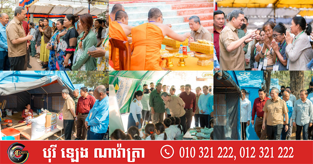 (បន្ទាយមានជ័យ)៖ សម្តេចបវរធិបតី ហ៊ុន ម៉ាណែត នាយករដ្ឋមន្ត្រីនៃកម្ពុជា នៅព្រឹកថ្ងៃសៅរ៍ ទី១៤ ខែកុម្ភៈ ឆ្នាំ២០២៦ បានចុះជួបសំណេះសំណាលសាកសួរសុខទុក្ខប្រជាពលរដ្ឋភៀសសឹកចំនួន ១.២៤៨គ្រួសារ មកពីភូមិព្រៃចាន់ និងភូមិជោគជ័យ ដែលកំពុងស្នាក់នៅមណ្ឌលសុវត្ថិភាព ក្នុងបរិវេណវត្តចាន់ស៊ីសាមគ្គីរតនារាម ស្ថិតនៅស្រុកអូរជ្រៅ ខេត្តបន្ទាយមានជ័យ។