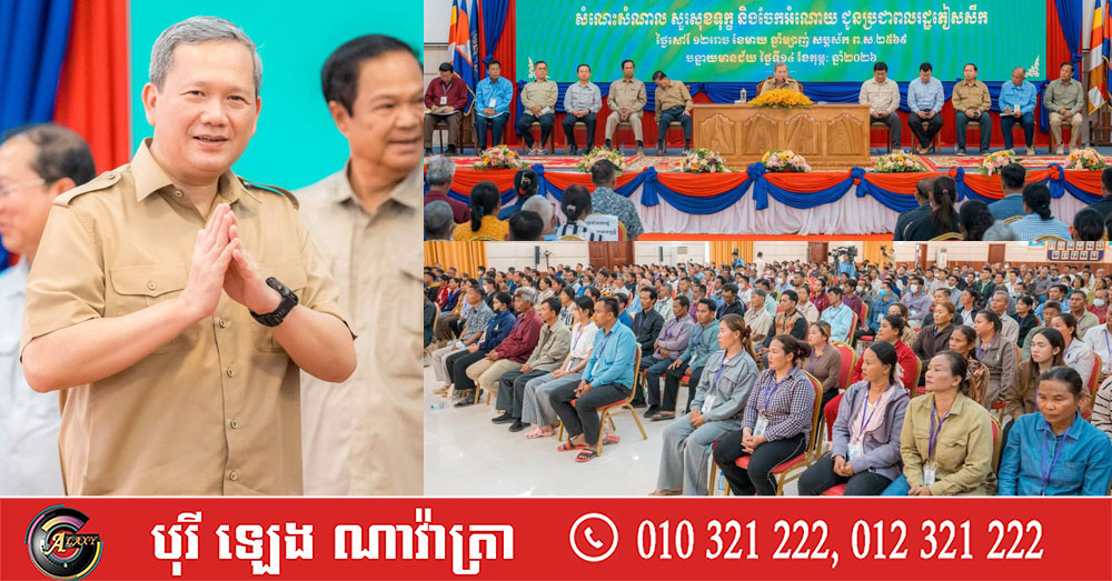 (បន្ទាយមានជ័យ)៖ បន្ទាប់ពីបញ្ចប់ការជួបសំណេះសំណាលសាកសួរសុខទុក្ខប្រជាពលរដ្ឋភៀសសឹកចំនួន ១.២៤៨គ្រួសារ មកពីភូមិព្រៃចាន់ និងភូមិជោគជ័យ នៅព្រឹកថ្ងៃសៅរ៍ ទី១៤ ខែកុម្ភៈ ឆ្នាំ២០២៦នេះ សម្តេចបវរធិបតី ហ៊ុន ម៉ាណែត នាយករដ្ឋមន្ត្រីនៃកម្ពុជា បានបន្តចុះជួបសំណេះសំណាលសាកសួរសុខទុក្ខប្រជាពលរដ្ឋភៀសសឹក ចំនួន៣០០គ្រួសារ មកពីស្រុកអូរជ្រៅ និងស្រុកថ្មពួក ខេត្តបន្ទាយមានជ័យ៕