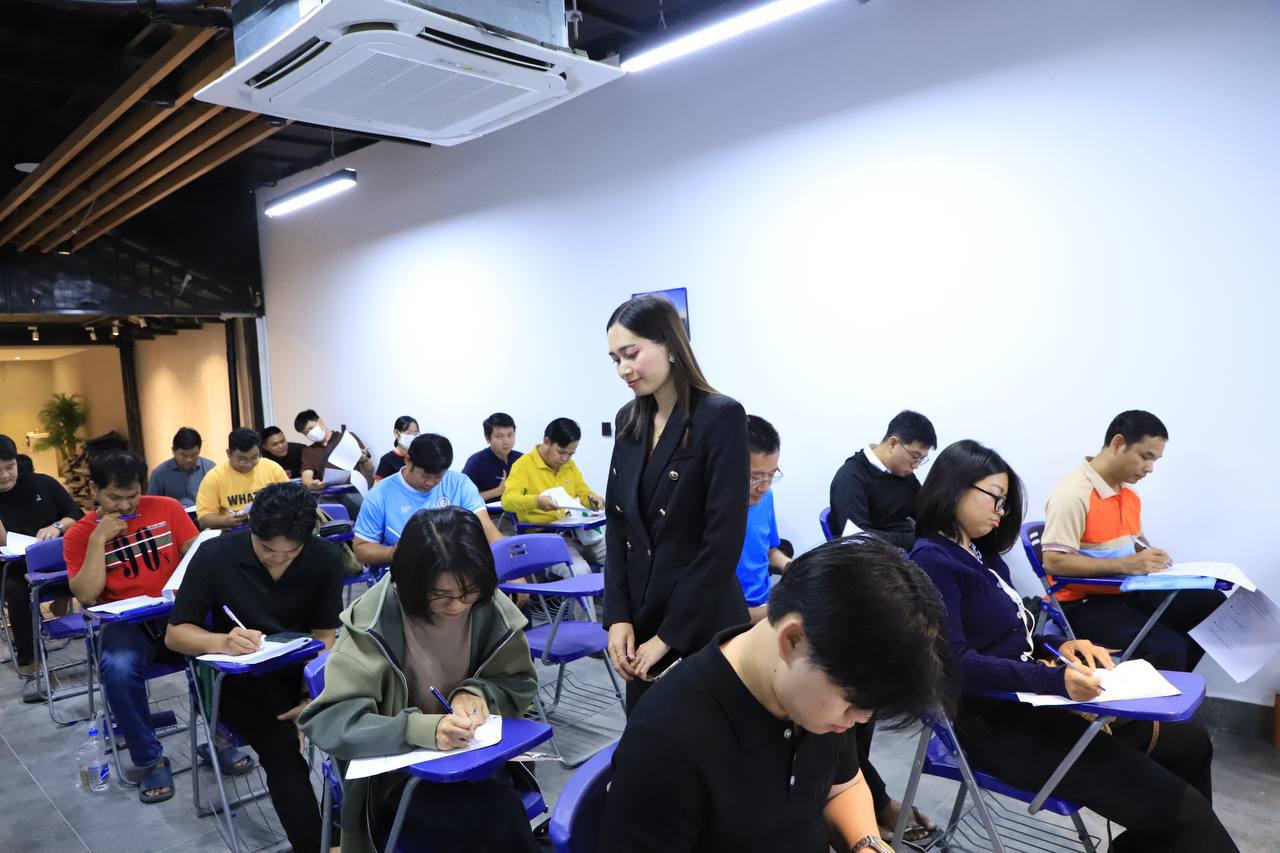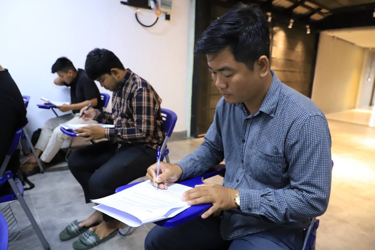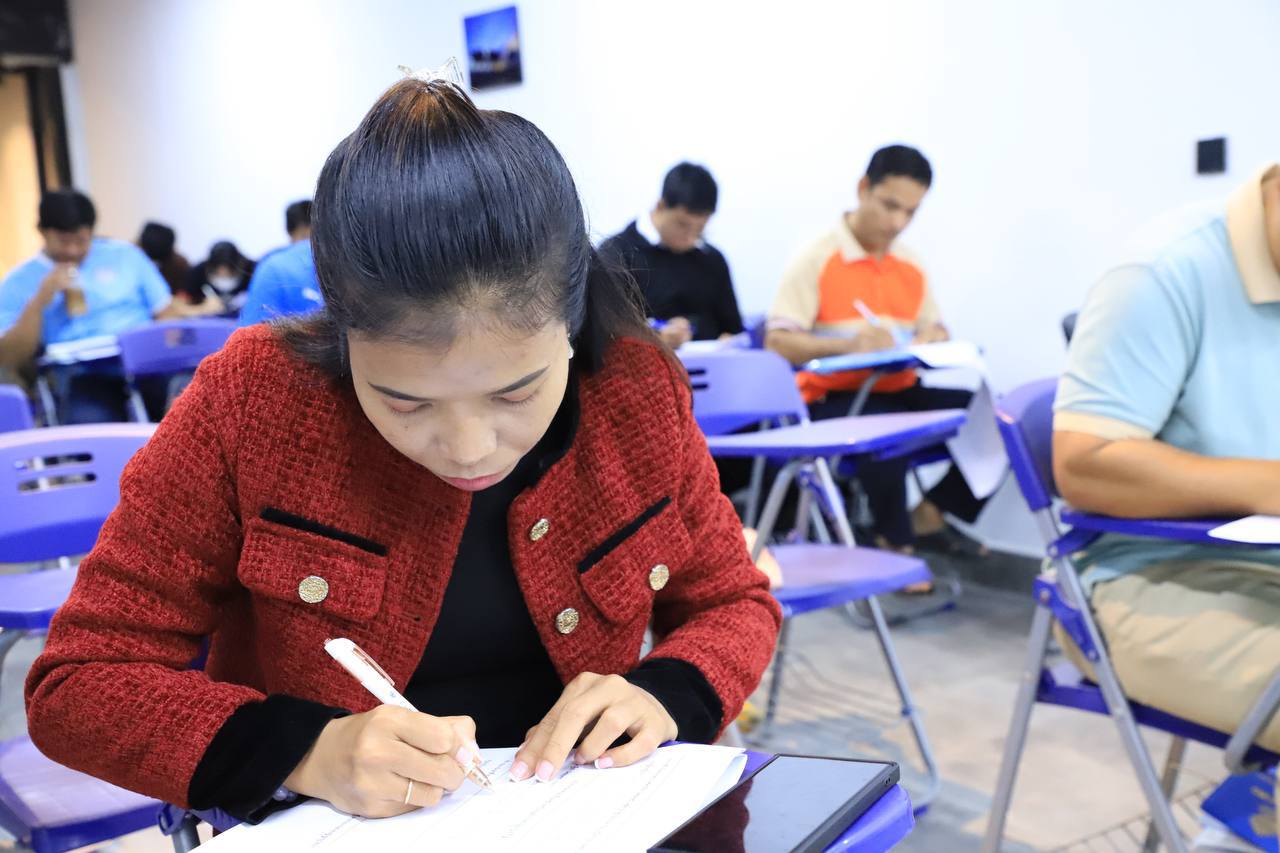 សិក្ខាកាមបានចូលរួមប្រឡងដោយយកចិត្តទុកដាក់ និងខិតខំប្រឹងប្រែង ដើម្បីទទួលបានវិញ្ញាបនបត្របញ្ជាក់ការសិក្សាពី FTC។