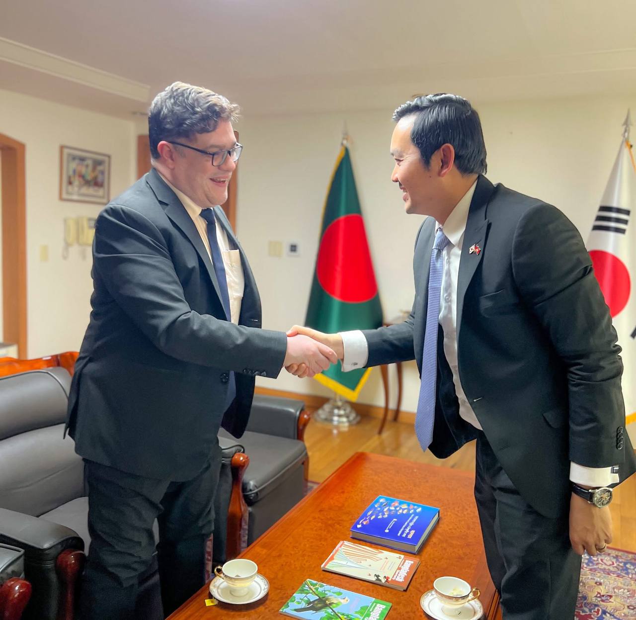 ទូតកម្ពុជាប្រចាំកូរ៉េ ជួបពិភាក្សាការងារជាមួយទូតបង់ក្លាដេស ដើម្បីពង្រឹងកិច្ចសហប្រតិបត្តិការ និងការពារផលប្រយោជន៍សហគមន៍នៅកូរ៉េ