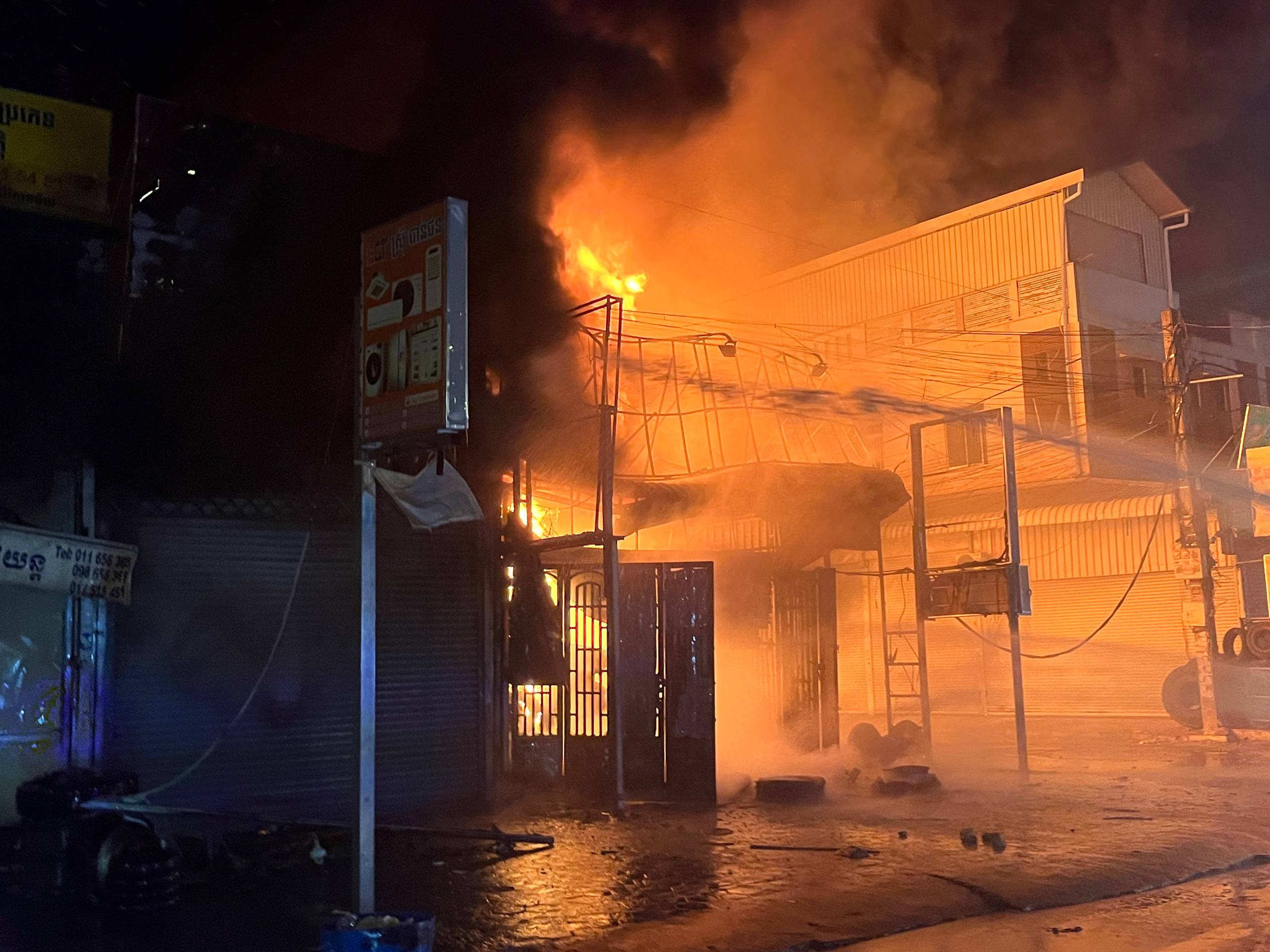 BREAKING: អគ្គិភ័យឆេះផ្ទះលក់កង់ឡានយ៉ាងសន្ធោសន្ធៅ នៅសង្កាត់ចោមចៅ ខណ្ឌពោធិ៍សែនជ័យ