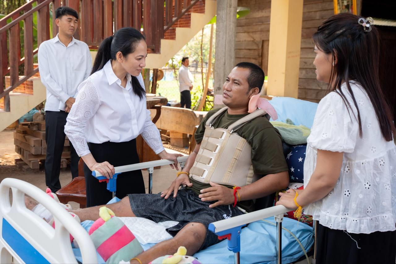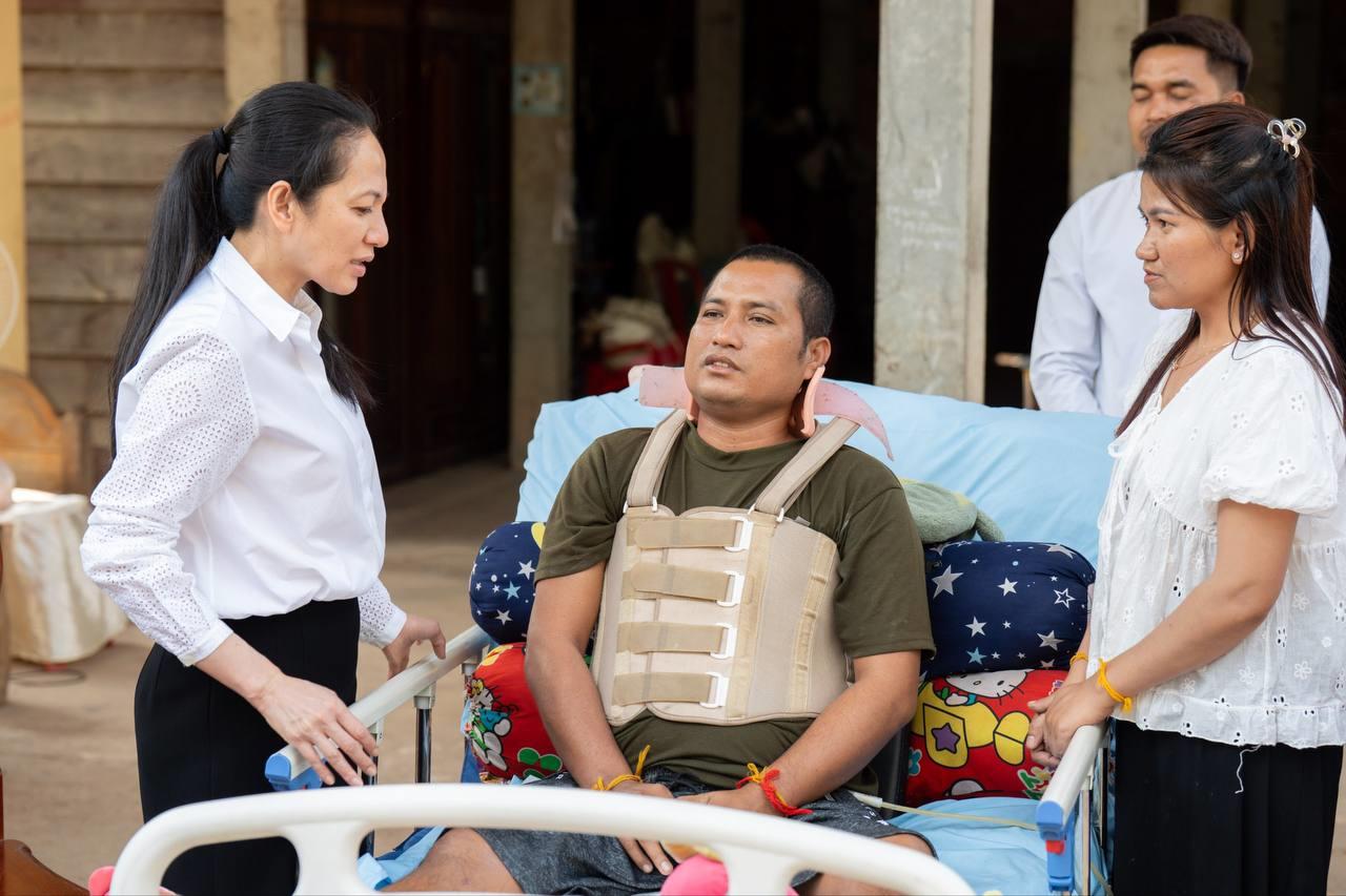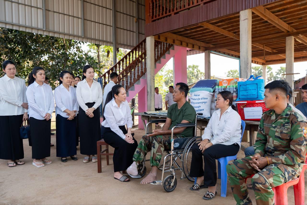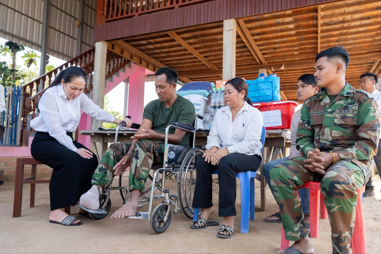 លោកជំទាវបណ្ឌិត ពេជ ចន្ទមុន្នី ហ៊ុនម៉ាណែត បន្តអញ្ជើញសួរសុខវីរកងទ័ព ដែលបានរងរបួសដល់មានពិការភាព កំពុងសម្រាកព្យាបាលនៅផ្ទះ