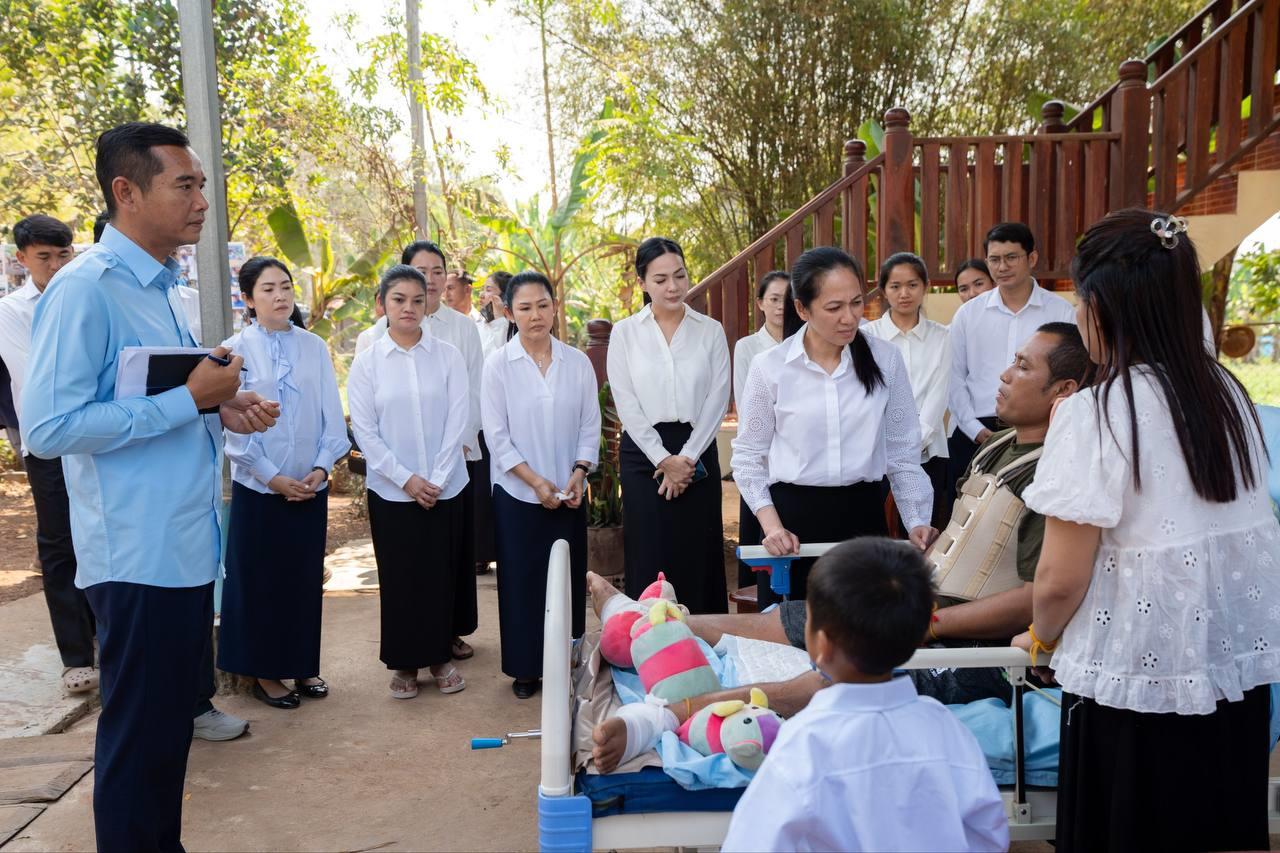 (សៀមរាប)៖ លោកជំទាវបណ្ឌិត ពេជ ចន្ទមុន្នី ហ៊ុនម៉ាណែត នៅព្រឹកថ្ងៃទី១៥ ខែកុម្ភៈ ឆ្នាំ២០២៦ បានបន្តអញ្ជើញសួរសុខវីរកងទ័ព ដែលបានរងរបួសដល់មានពិការភាព កំពុងសម្រាកព្យាបាលនៅផ្ទះ។