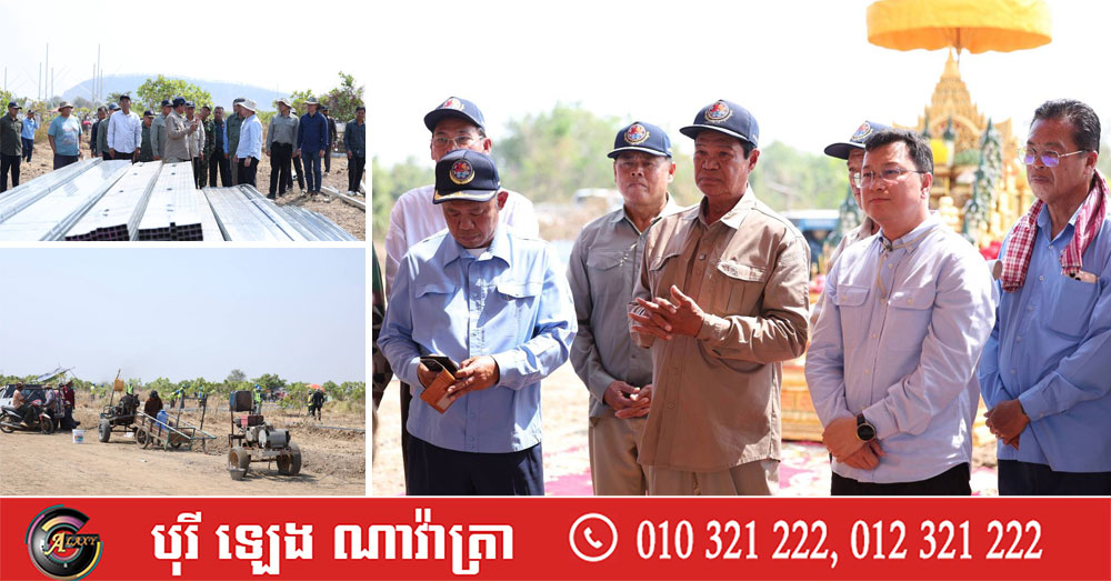 (បន្ទាយមានជ័យ)៖ កិត្តិសង្គហបណ្ឌិត គន់ គីម ទេសរដ្ឋមន្រ្តី អនុប្រធានទី១ គណៈកម្មាធិការជាតិគ្រប់គ្រងគ្រោះមហន្តរាយ រួមជាមួយលោក ឌិត ទីណា រដ្ឋមន្រ្តីក្រសួងកសិកម្ម រុក្ខាប្រមាញ់ និងនេសាទ និងជាប្រធានក្រុមការងាររាជរដ្ឋាភិបាលចុះមូលដ្ឋានខេត្តបន្ទាយមានជ័យ ព្រមទាំងនាយឧត្តមសេនីយ៍ ខេង សុមេធ និងលោក អ៊ុំ រាត្រី អភិបាលខេត្ត ចូលរួមពិធីបញ្ចុះបឋមសិលាសាងសង់ជម្រកបណ្តោះអាសន្នជូនប្រជាពលរដ្ឋភៀសសឹក ក្នុងស្រុកស្វាយចេក ខេត្តបន្ទាយមានជ័យ។