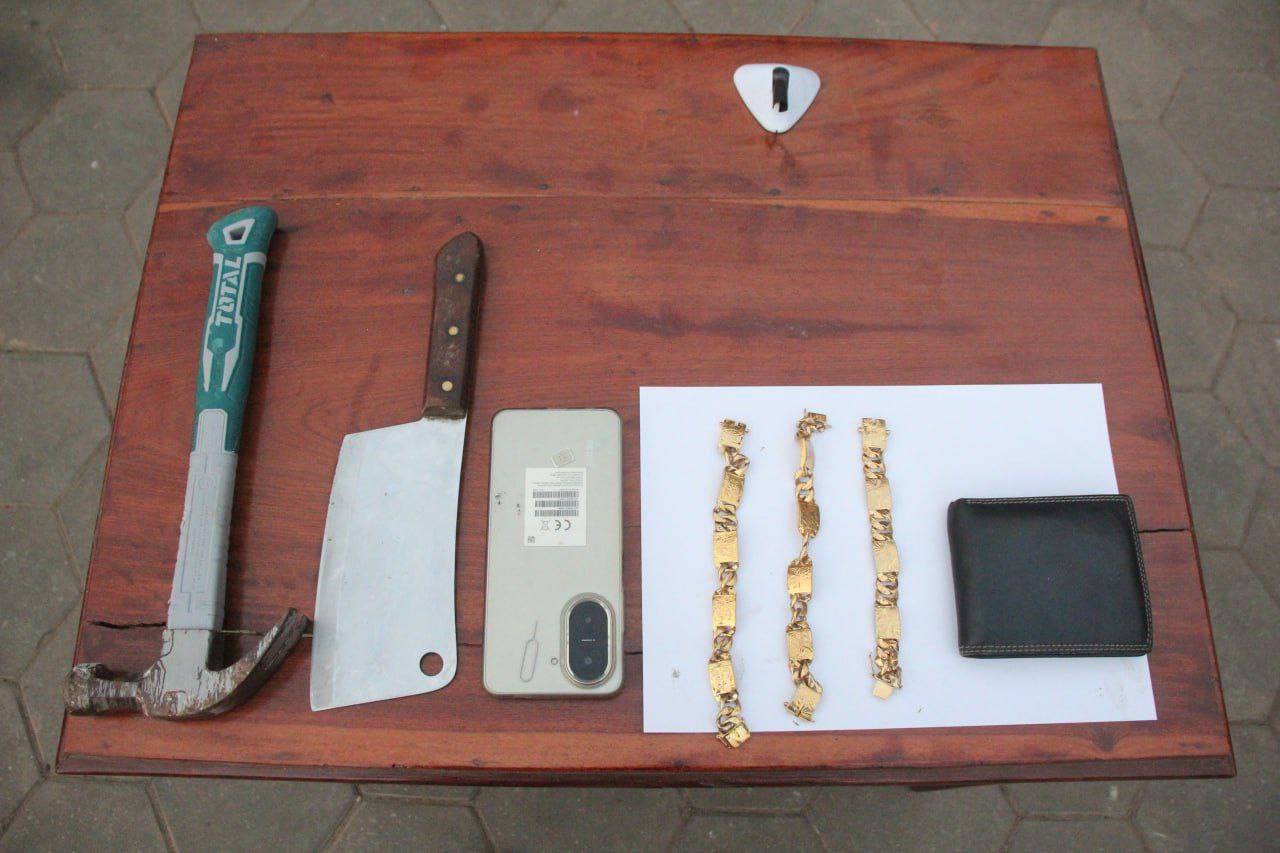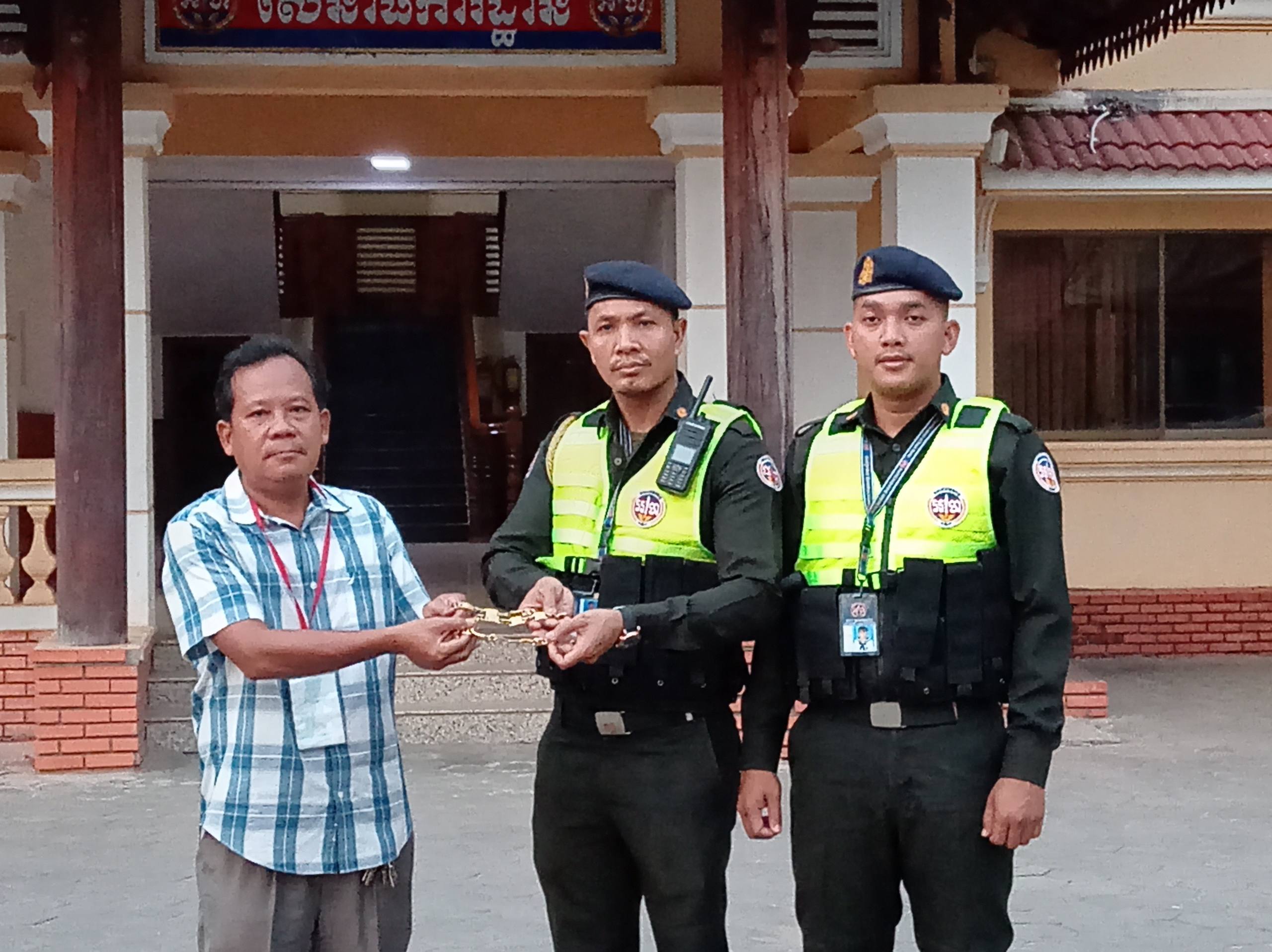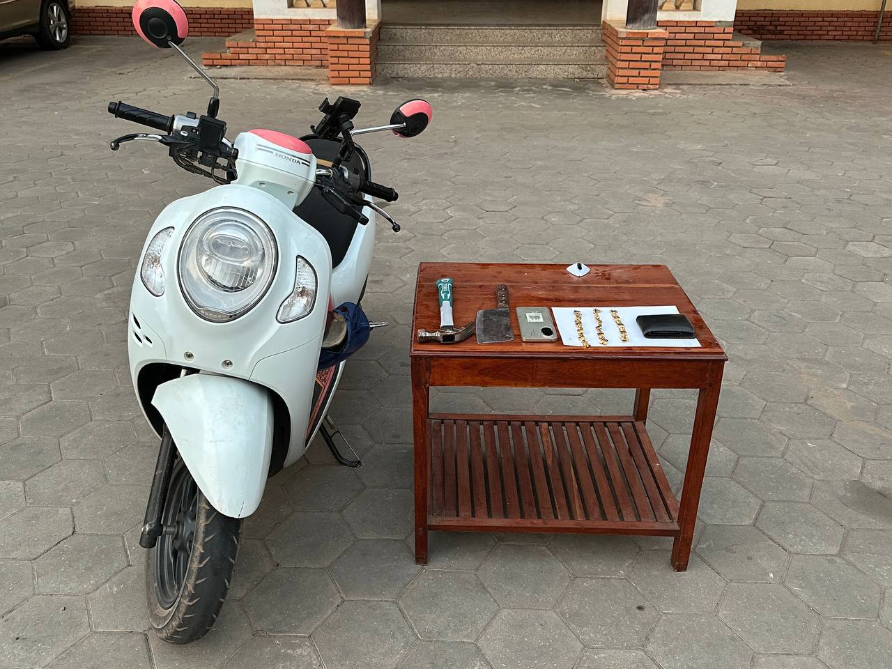បន្ទាប់ពីទទួលបានព័ត៌មាន កម្លាំងអាវុធហត្ថក្រុងសៀមរាប និងកម្លាំងការិយាល័យជំនាញ បានចេញអន្តរាគមន៍ឃាត់ខ្លួនជនសង្ស័យម្នាក់ ដកហូតវត្ថុតាង ម៉ូតូ០១គ្រឿង ទូរស័ព្ទ០១គ្រឿង ញញួរ០១ដើម កាំបិតតាំងតោ០១ដើម លោហធាតុពណ៌លឿងចំនួន០៣ខ្សែ បញ្ជូនទៅទីបញ្ជាការកងរាជអាវុធហត្ថខេត្ដសៀមរាប ដើម្បីអនុវត្ដន៍តាមនីតិវិធី ព្រមទាំងបានប្រគល់ ខ្សែដៃផ្លាកទីន ជូនជនរងគ្រោះវិញផងដែរ។