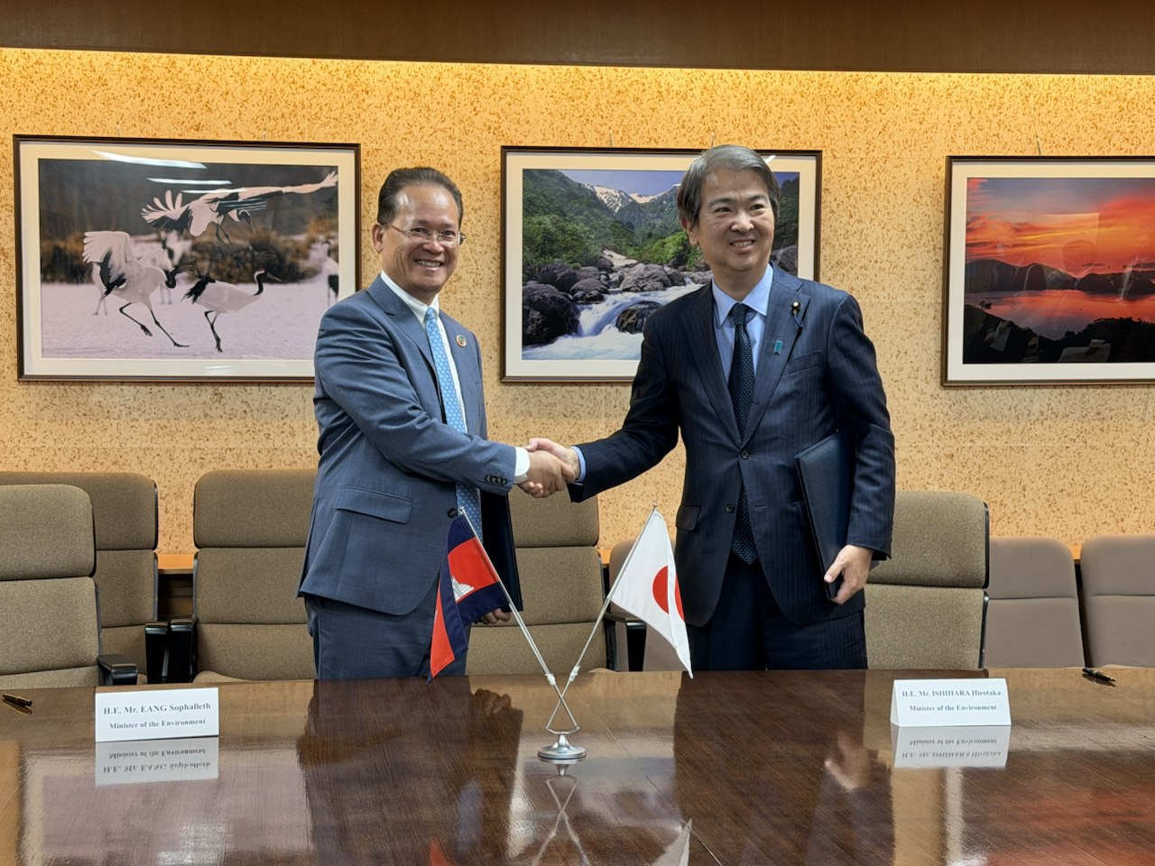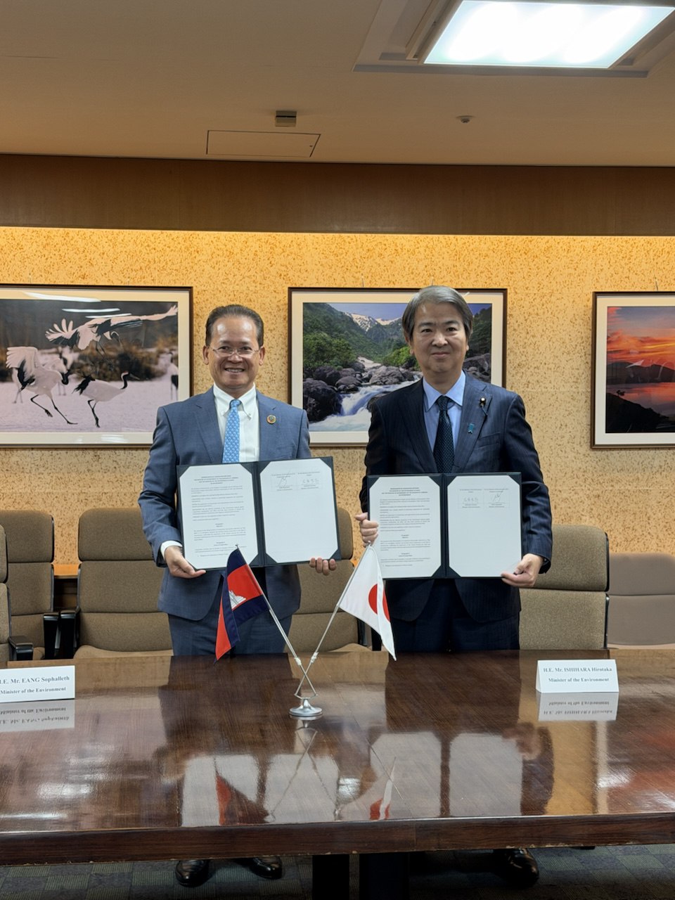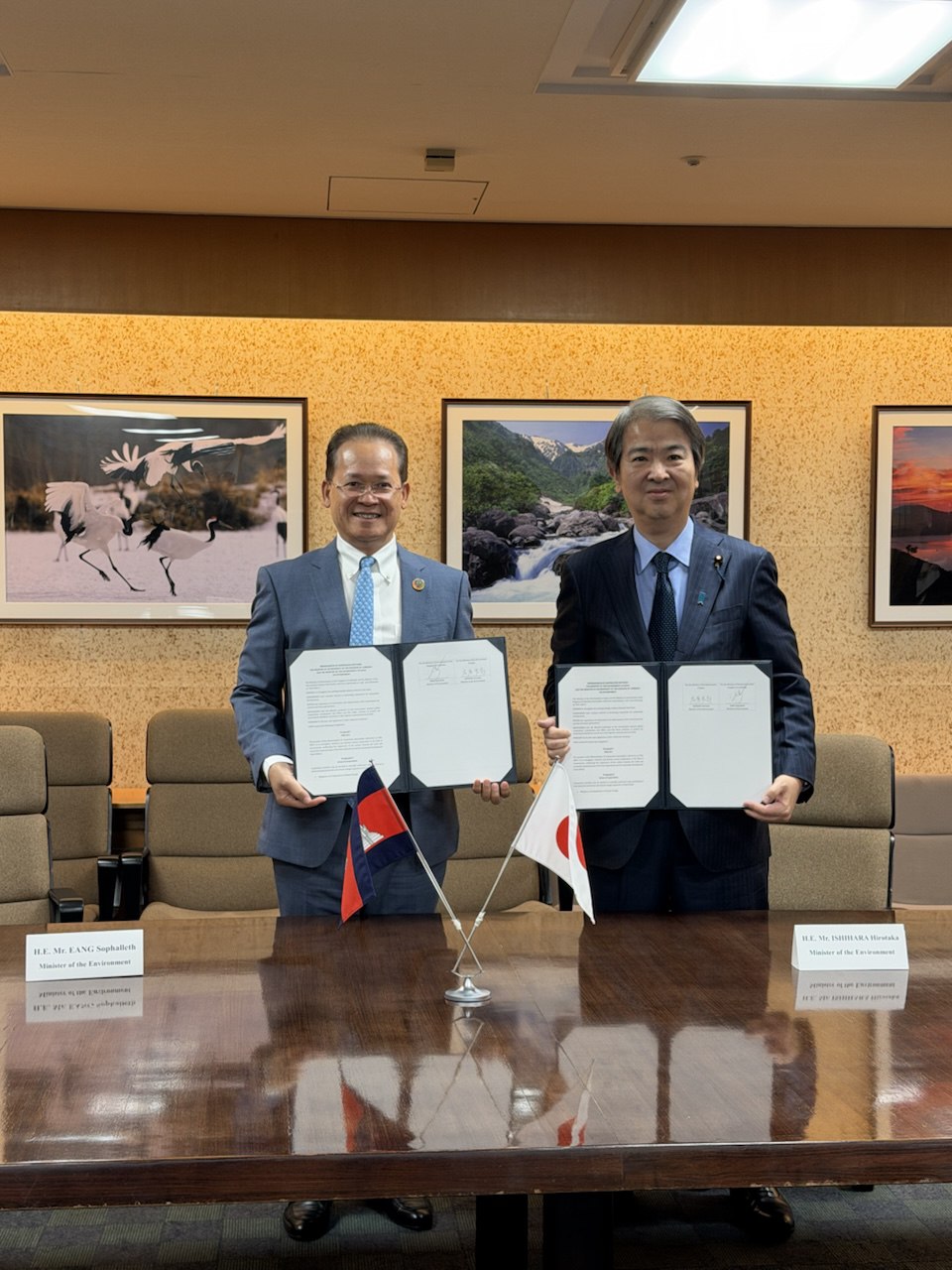 អនុស្សារណៈត្រូវបានចុះហត្ថលេខារវាងលោកបណ្ឌិត អ៊ាង សុផល្លែត រដ្ឋមន្ត្រីក្រសួងបរិស្ថាន និងលោក ISHIHARA Hirotaka រដ្ឋមន្ត្រីក្រសួងបរិស្ថានជប៉ុន នៅថ្ងៃទី១៦ ខែកុម្ភៈ ឆ្នាំ២០២៦ នៅទីក្រុងតូក្យូ ប្រទេសជប៉ុន។