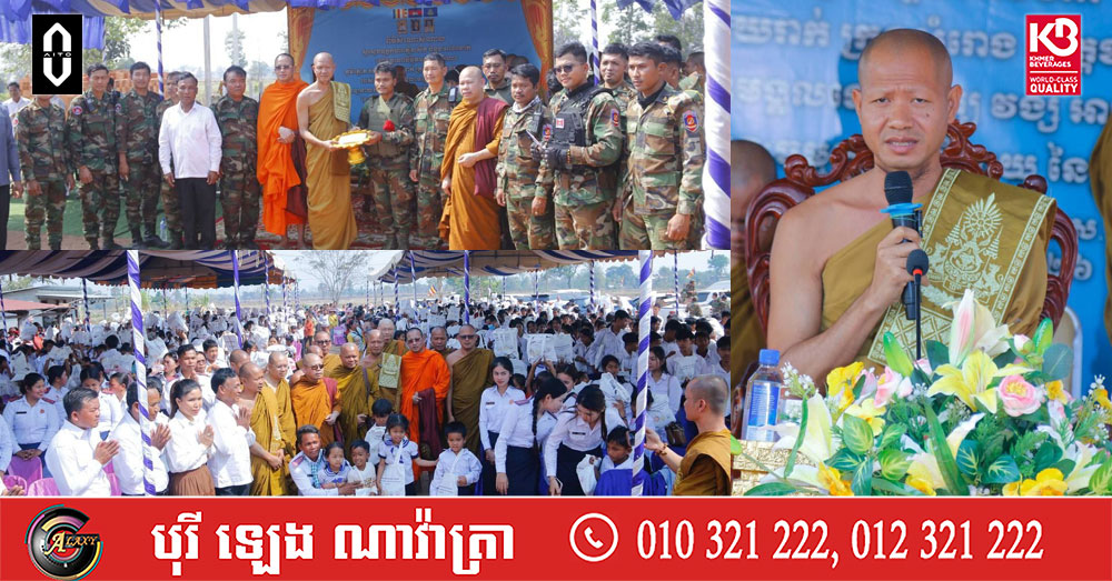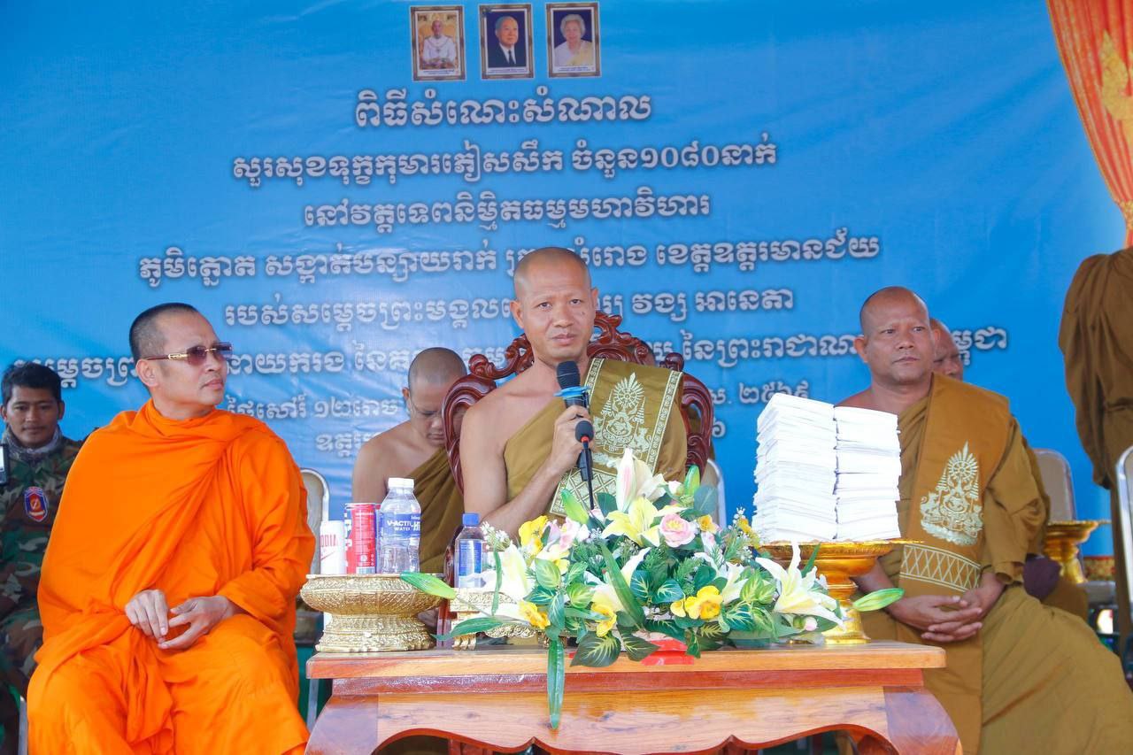 សម្តេចព្រះមង្គលទេព្វាចារ្យ វង្ស អានេតា នាំស្បៀង ថវិកា និងសម្ភារប្រគេនព្រះសង្ឃ២១វត្ត និងលោកគ្រូ អ្នកគ្រូ កូនសិស្សភៀសសឹក និងវីរកងទ័ពឈរជើងតាមបន្ទាត់ព្រំដែនជាង ១ ០០០នាក់ នៅខេត្តឧត្តរមានជ័យ