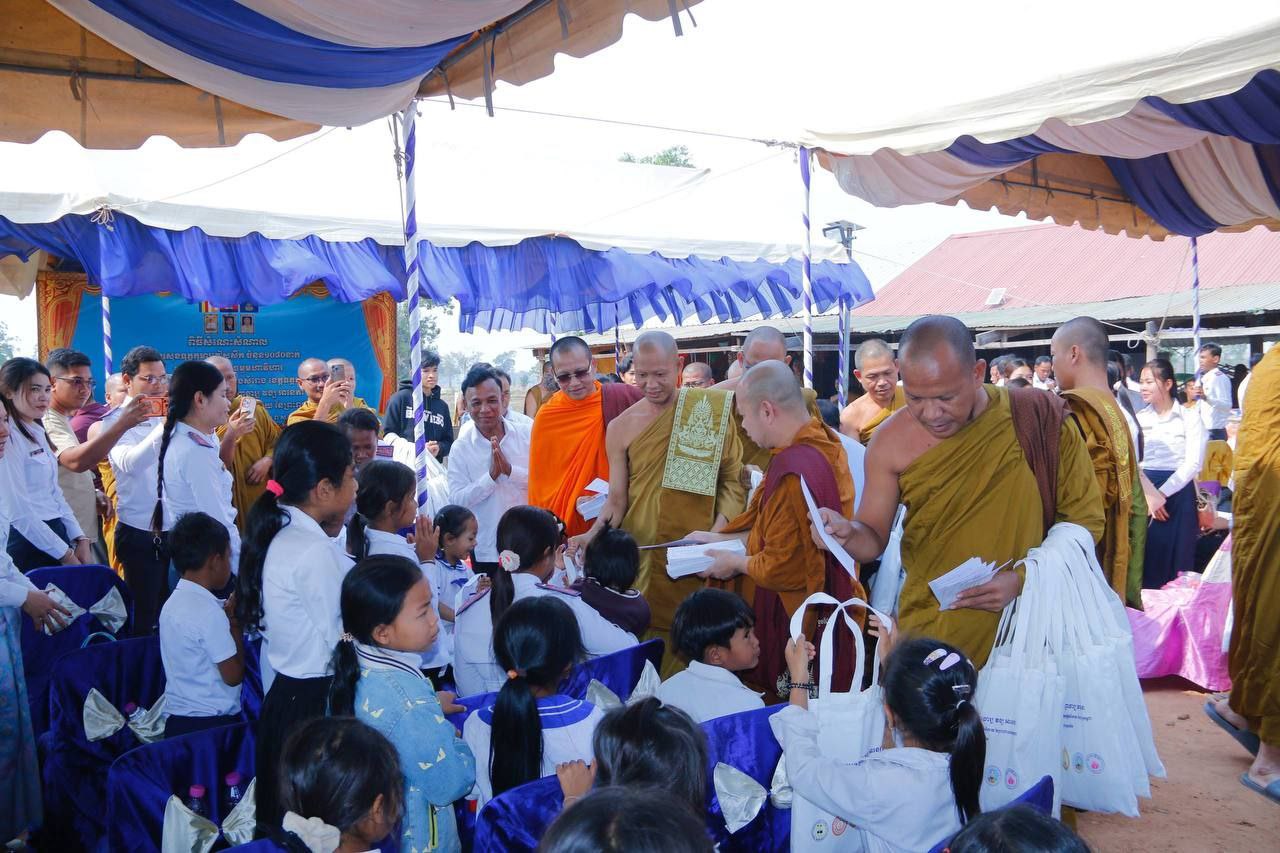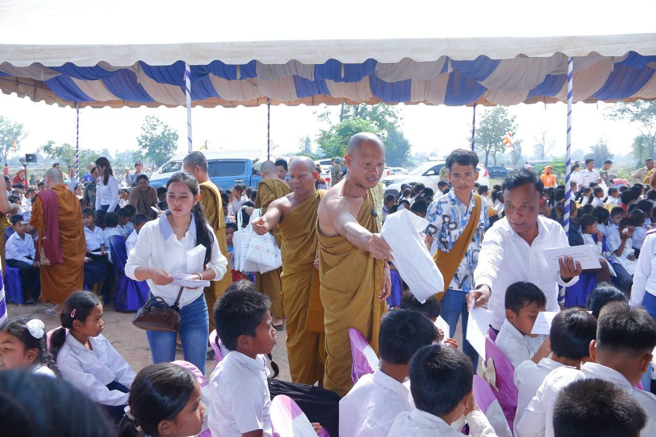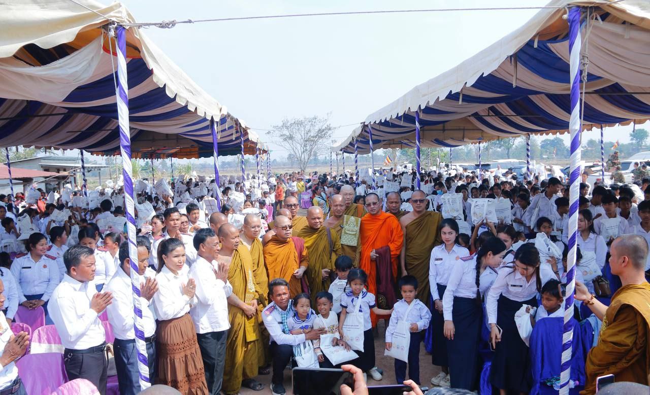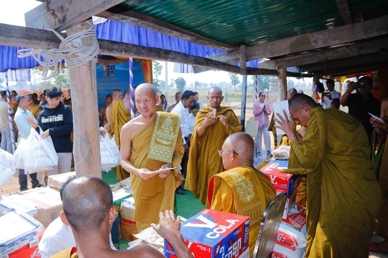 (ឧត្តរមានជ័យ)៖ សម្តេចព្រះមង្គលទេព្វាចារ្យ វង្ស អានេតា ព្រះសង្ឃនាយករង នៃគណៈធម្មយុត្តិកនិកាយ នៃព្រះរាជាណាចក្រកម្ពុជា ព្រះស្ថាបនិក និងជាព្រះសាកលវិទ្យាធិការ នៃសាកលវិទ្យាល័យសម្តេចព្រះមហាសង្ឃរាជ បួរ គ្រី រួមជាមួយព្រះមន្ត្រីសង្ឃជាច្រើនអង្គទៀត កាលពីថ្ងៃទី១៤ ខែកុម្ភៈ ឆ្នាំ២០២៦ បាននាំយកស្បៀង ថវិកា និងសម្ភារៈមួយចំនួនទៀតប្រគេនដល់ព្រះសង្ឃចំនួន ២១វត្ត ដែលរងគ្រោះដោយសង្គ្រាមឈ្លានពានពីប្រទេសថៃ លោកគ្រូ អ្នកគ្រូ សិស្សានុសិស្សភៀសសឹក និងវីរកងទ័ពកំពុងឈជើងការពារទឹកដីតាមបន្ទាត់ព្រំដែនចំនួន ១,០៨០នាក់។ ពិធីប្រគល់បានធ្វើឡើងនៅក្នុងបរិវេណវត្ដទេពនិមិត្ដធម្មមហាវិហារ ភូមិត្នោត សង្កាត់បន្សាយរាក់ ក្រុងសំរោង ខេត្តឧត្តរមានជ័យ។