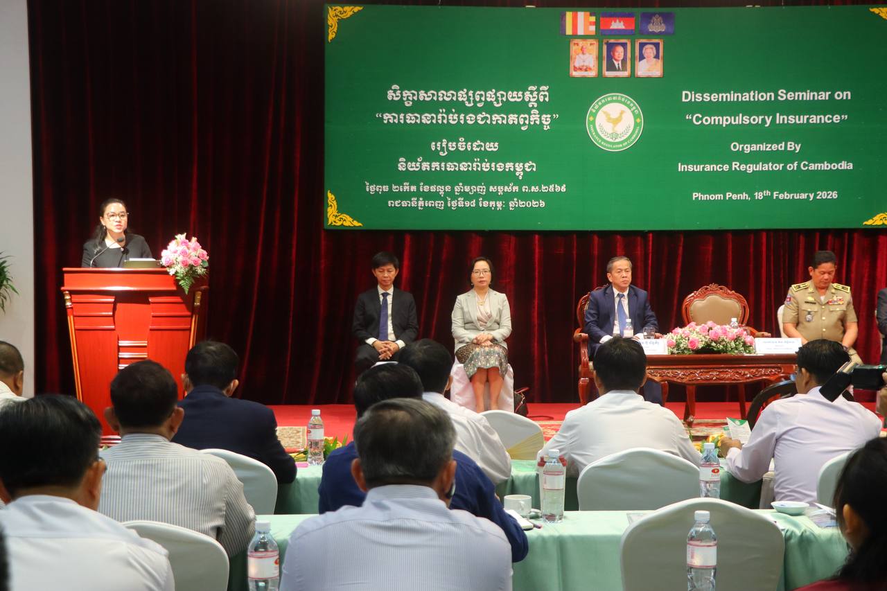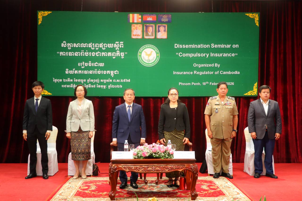 (ភ្នំពេញ)៖ លោក ប៊ូ ច័ន្ទភីរូ អគ្គនាយកនៃនិយ័តករធានារ៉ាប់រងកម្ពុជា នៅថ្ងៃទី១៨ ខែកុម្ភៈ ឆ្នាំ២០២៦នេះ បានបញ្ជាក់ឲ្យដឹងថា ម្ចាស់យានយន្តប្រកបអាជីវកម្ម ម្ចាស់អាជីវកម្ម ដឹកជញ្ជូនអ្នកដំណើរ និងម្ចាស់ការដ្ឋានសាងសង់ ត្រូវមានកាតព្វកិច្ចទិញធានារ៉ាប់រង សម្រាប់ការប្រកបអាជីវកម្ម។