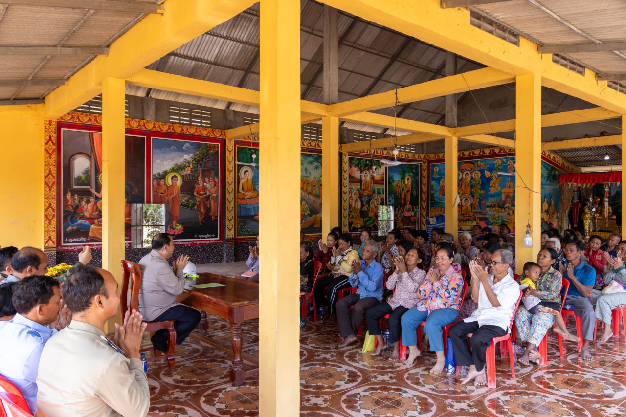 ក្នុងឱកាសនៃពិធីសំណេះសំណាល ក្នុងនាមលោករដ្ឋមន្ត្រី ឆាយ ឫទ្ធិសែន លោកសូមចូលរួមអបអរសាទរ និងសប្បាយរីករាយជាមួយប្រជាពលរដ្ឋ និងអាជ្ញាធរគ្រប់លំដាប់ថ្នាក់នៅក្នុងមូលដ្ឋាននេះ ចំពោះការទទួលបានសមិទ្ធផលថ្មី បន្ថែមទៀតពីរាជរដ្ឋាភិបាលកម្ពុជា តាមរយៈក្រសួងអភិវឌ្ឍន៍ជនបទ។ ការងារលើកកម្រិតគុណភាពផ្លូវក្រាលបេតុង ចំនួន១ខ្សែ ប្រវែង ២ ១២០ម៉ែត្រ បានកសាងឡើងក្រោមគោលនយោបាយ និងយុទ្ធសាស្រ្តអភិវឌ្ឍន៍ប្រទេសជាតិ នៃរាជរដ្ឋាភិបាល ក្រោមការដឹកនាំដ៏ឈ្លាសវៃ ប្រកបដោយគតិបណ្ឌិតរបស់ សម្តេចមហាបវរធិបតីនាយករដ្ឋមន្ត្រី ដែលកើតចេញពីការបោះឆ្នោតជ្រើសតាំងតំណាងរាស្រ្ត នីតិកាលទី៧ ប្រកបដោយសេរី យុត្តិធម៌ និងពហុបក្ស តាមម៌ាគាលទ្ធិប្រជាធិបតេយ្យ កាលពីថ្ងៃអាទិត្យ ទី២៣ ខែកក្កដា ឆ្នាំ២០២៣ កន្លងមកនេះ។