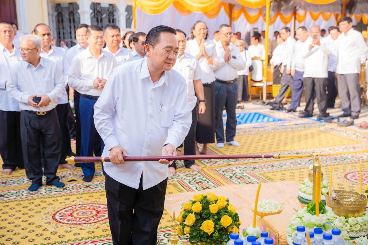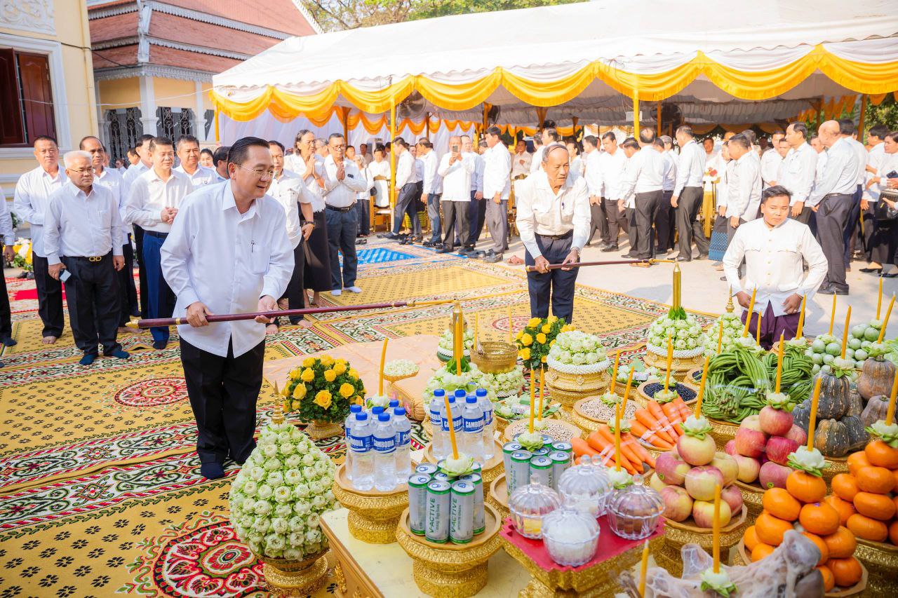 (បាត់ដំបង)៖ លោក សុខ លូ អភិបាលខេត្តបាត់ដំបង ដឹកនាំមន្រ្តីរាជការនិងពុទ្ធបរិស័ទ្ធនាព្រឹកថ្ងៃទី១៨ ខែកុម្ភៈ ឆ្នាំ២០២៦ បានអញ្ជើញជាគណៈអធិបតីក្នុងពិធីក្រុងពាលីបួងសួងសុំសេចក្តីសុខ ក្នុងការប្រារព្ធធ្វើពិធីបុណ្យបូជាព្រះសព ព្រះឥន្ទមុនី អ៊ុក មុត ព្រះរាជាគណៈថ្នាក់ចត្វា ព្រះសង្ឃកិច្ចកោសល្យព្រះមេគណខេត្ត ព្រះឧបជ្ឈាយ៍ខេត្ត និងជាព្រះនាយកពុទ្ធិកវិទ្យាល័យ អ៉ឹង ធួង ខេត្តបាត់ដំបង ដែលប្រាព្ធធ្វើឡើងនៅបរិវេណវត្តពោធិ៍វាល សង្កាត់រតនៈ ក្រុងបាត់ដំបង ខេត្តបាត់ដំបង។