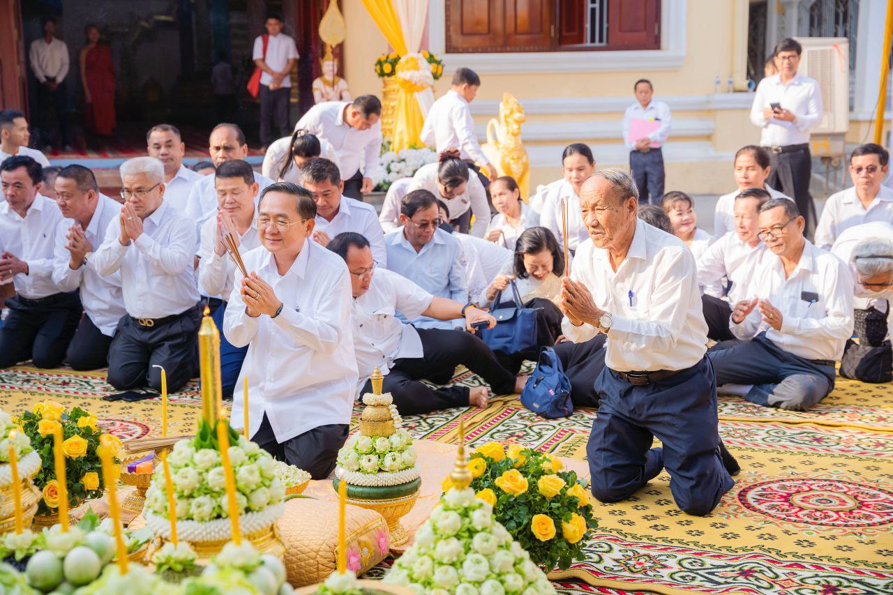 ថ្នាក់ដឹកនាំខេត្តបាត់ដំបង ក្រុងពាលី បួងសួងសុំសេចក្តីសុខ ក្នុងពិធីបុណ្យបូជាព្រះសព ព្រះឥន្ទមុនី អ៊ុក មុត ព្រះរាជាគណៈថ្នាក់ចត្វា ព្រះសង្ឃកិច្ចកោសល្យព្រះមេគណខេត្ត នៅបរិវេណវត្តពោធិ៍វាល