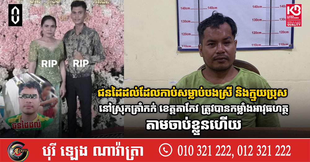 ជនដៃដល់ដែលកាប់សម្លាប់បងស្រី និងក្មួយប្រុស នៅស្រុកត្រាំកក់ ខេត្តតាកែវ ត្រូវបានកម្លាំងអាវុធហត្ថតាមចាប់ខ្លួនហើយ
