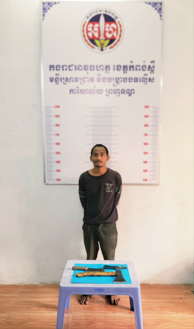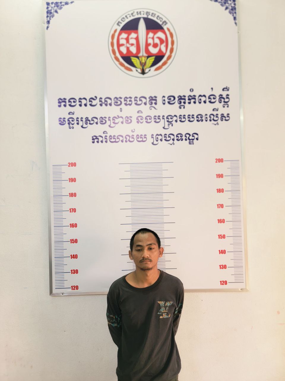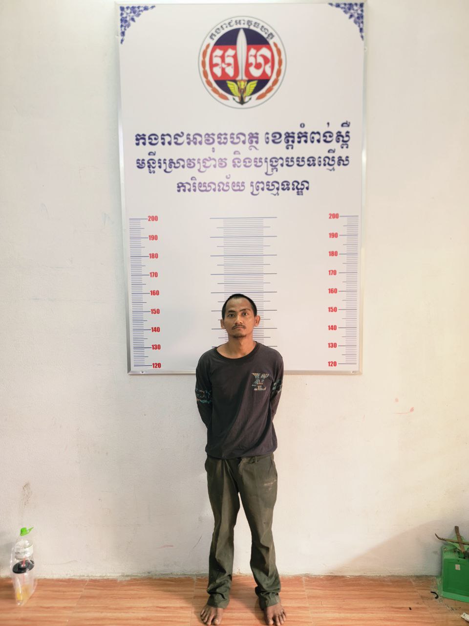 ក្រោយពីបានការអនុញ្ញាត្តពីលោកឧត្តមសេនីយ៍ត្រី ម៉េង ស្រ៊ុន មេបញ្ជាការកងរាជអាវុធហត្ថខេត្តកំពង់ស្ពឺ នៅថ្ងៃទី១៨ ខែកុម្ភៈ ឆ្នាំ២០២៦ វេលាម៉ោង១០៖៣០នាទី កម្លាំងមូលដ្ឋានកងរាជអាវុធហត្ថស្រុកសំរោងទង ដឹកនាំដោយលោក វរសេនីយ៍ត្រី បេ ចំរើន សហការជាមួយកម្លាំងមន្ទីរស្រាវជ្រាវនិងបង្ក្រាបបទល្មើសខេត្ត បានធ្វើការឃាត់ខ្លួនជនសង្ស័យម្នាក់ឈ្មោះ សេង សុខឆេង អាយុ២៩ឆ្នាំ មុខរបរមិនពិតប្រាកដ រស់នៅភូមិវល្លិ៍សរ ឃុំវល្លិ៍សរ ស្រុកសំរោងទង ខេត្តកំពង់ស្ពឺ។
