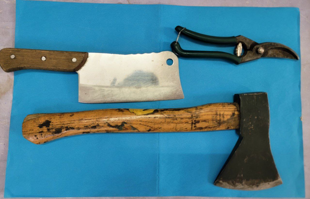 វត្ថុតាងរួមមាន៖ កាំបិតតាំងតោចំនួន១, ពូថៅចំនួន១ និងកន្ដ្រៃកាត់ខ្សែភ្លើងចំនួន១។ បច្ចុប្បន្នជនសង្ស័យរួមទាំងវត្ថុតាងបានបញ្ជូនទៅកាន់ទីបញ្ជាការដ្ឋានកងរាជអាវុធហត្ថខេត្តកំពង់ស្ពឺដើម្បីបន្តនីតិវិធី៕