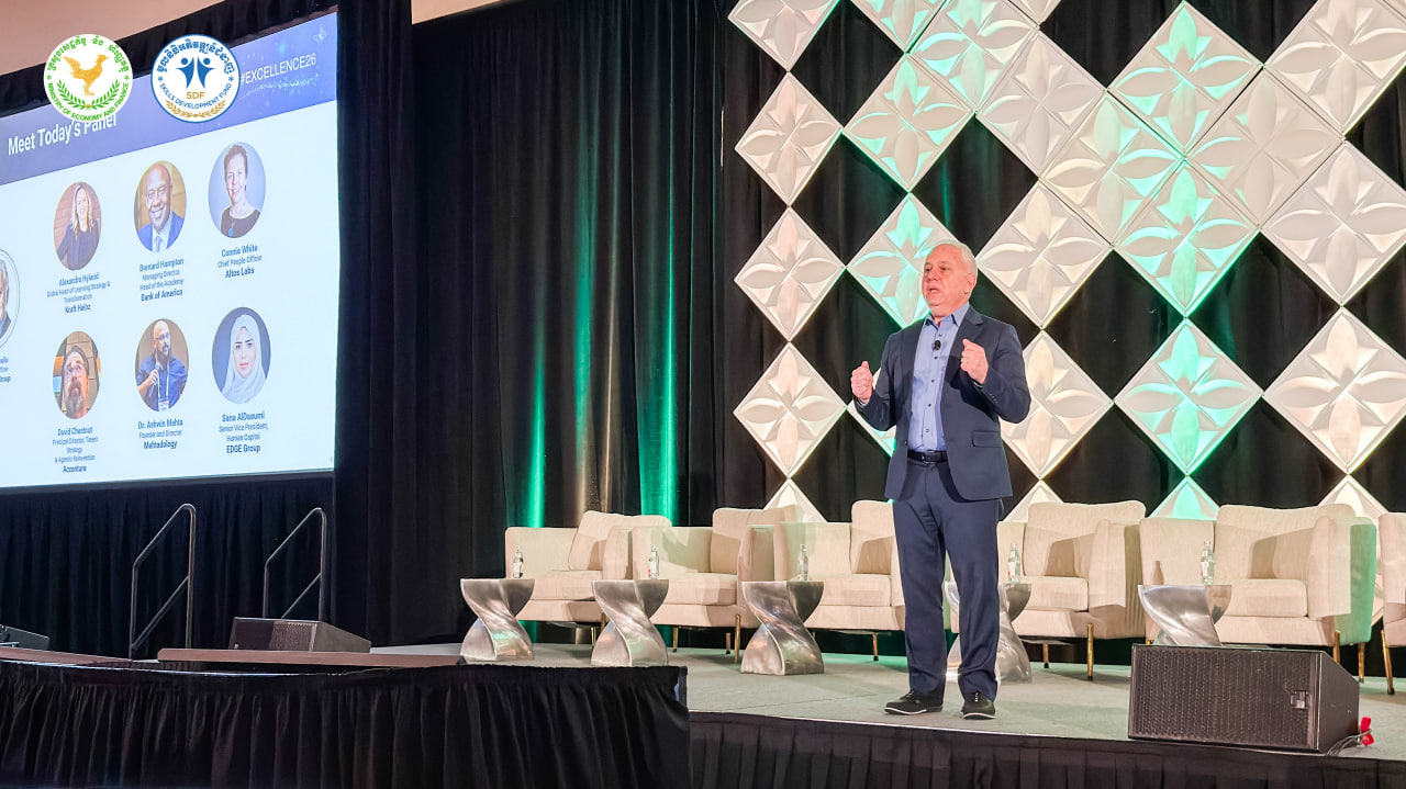 ក្នុងឱកាសសន្និសីទអន្តរជាតិស្តីពី «ឧត្តមភាពនៃមូលធនមនុស្សឆ្នាំ ២០២៦» (HCM Excellence Conference 2026) នៅរដ្ឋផ្លរីដា បណ្ឌិតសភាចារ្យ ផាន់ ផល្លា រដ្ឋលេខាធិការនៃក្រសួងសេដ្ឋកិច្ច និងហិរញ្ញវត្ថុ និងជាប្រធានក្រុមប្រឹក្សាបរធនបាលនៃ SDF ព្រមទាំងលោក គី សុខគីម នាយកប្រតិបត្តិនៃ SDF បានអញ្ជើញទទួលពានរង្វាន់ដ៏មានកិត្តិយសនេះជាផ្លូវការ។